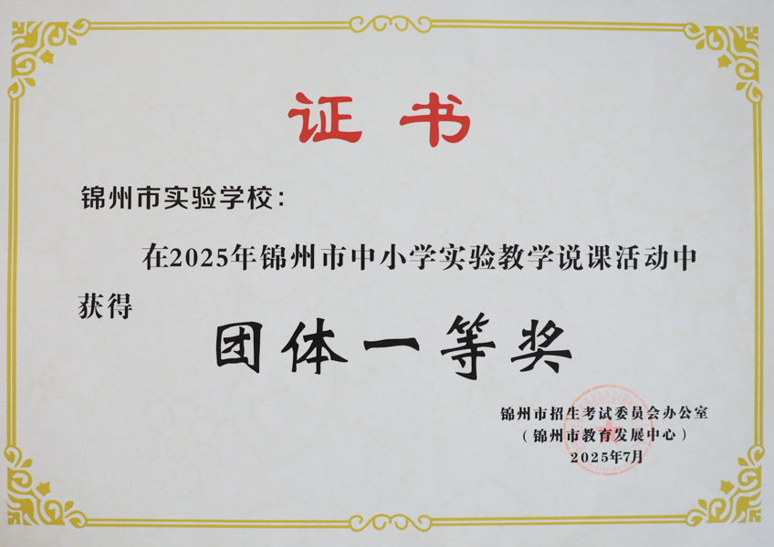2025年 在2025年锦州市中小学实验教学说课活动中获得团体一等奖