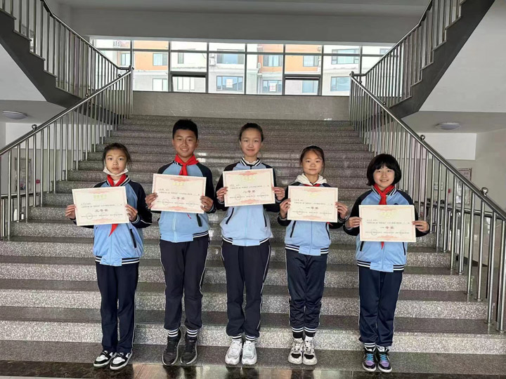 为辽宁省第四届“小学生报杯”语言文字应用能力集中展示活动中荣获优秀演讲奖、优秀书写奖、优秀征文奖的三名同学颁发了证书。
