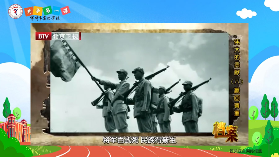 1945年9月3日,中国人民经过14年浴血奋战,取得抗日战争的伟大胜利,宣告了世界反法西斯战争的完全胜利。学生观看档案资料视频,进一步了解中国人民为抗日战争和世界反法西斯战争的胜利做出的伟大贡献,实验少年一同铭记历史、缅怀先烈、珍爱和平、开创未来!