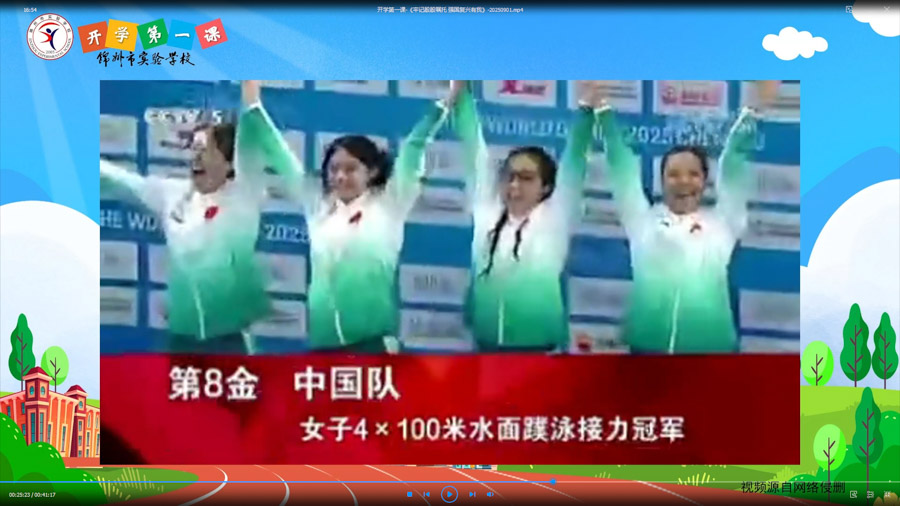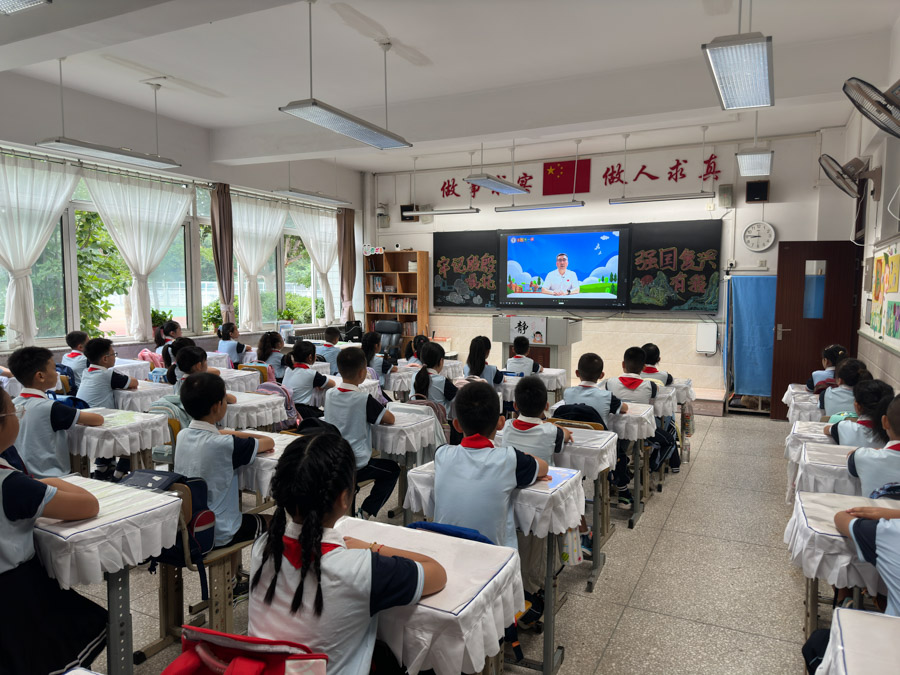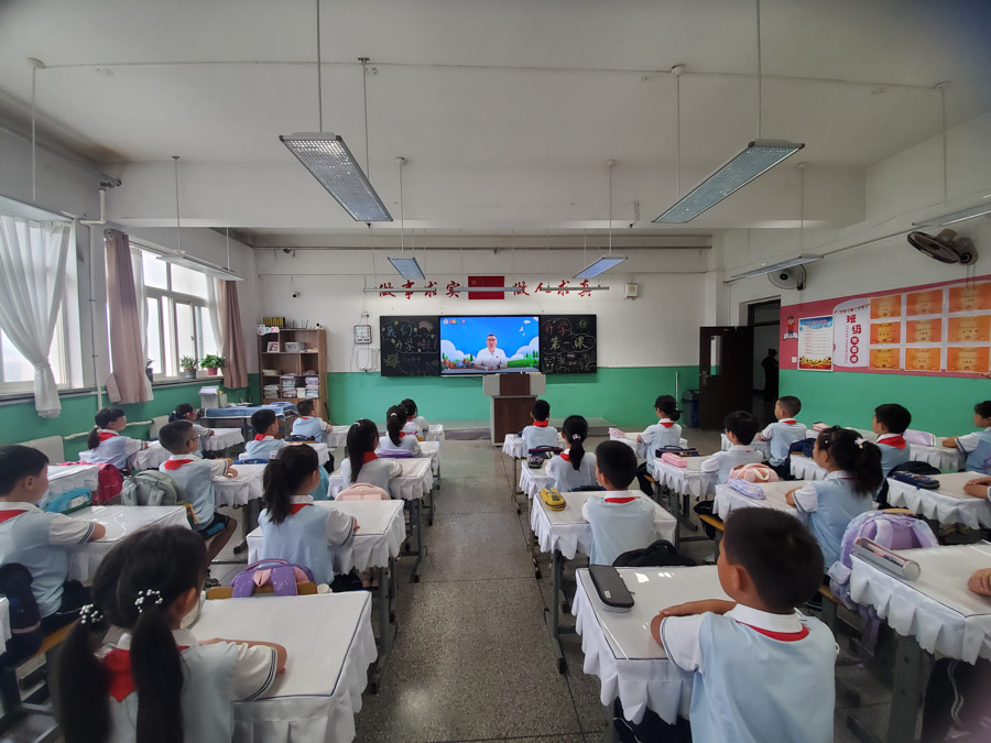 升旗仪式结束后,全体学生收看了校园电视台的《开学第一课》。