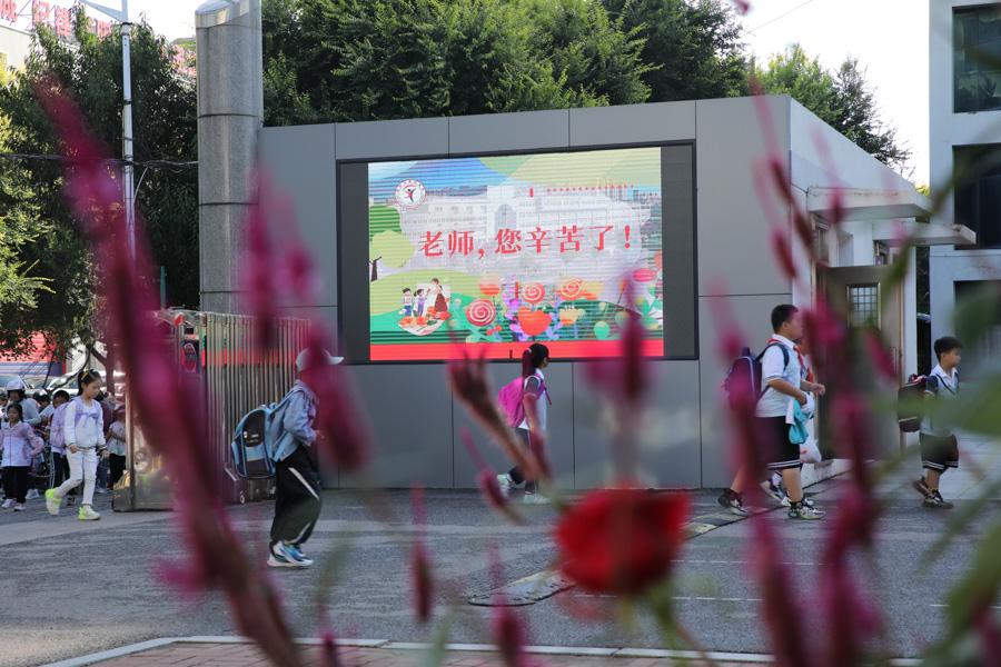 日暖风和,师恩永驻。学校电子屏亮起“老师,您好!”“教师节快乐!”“感恩有您”等暖心祝福语。明亮的祝福在阳光下熠熠生辉,成为校园里一道独特的风景线。这场特别的"白昼亮灯"活动,以最直接的方式表达了对教师的崇高敬意。