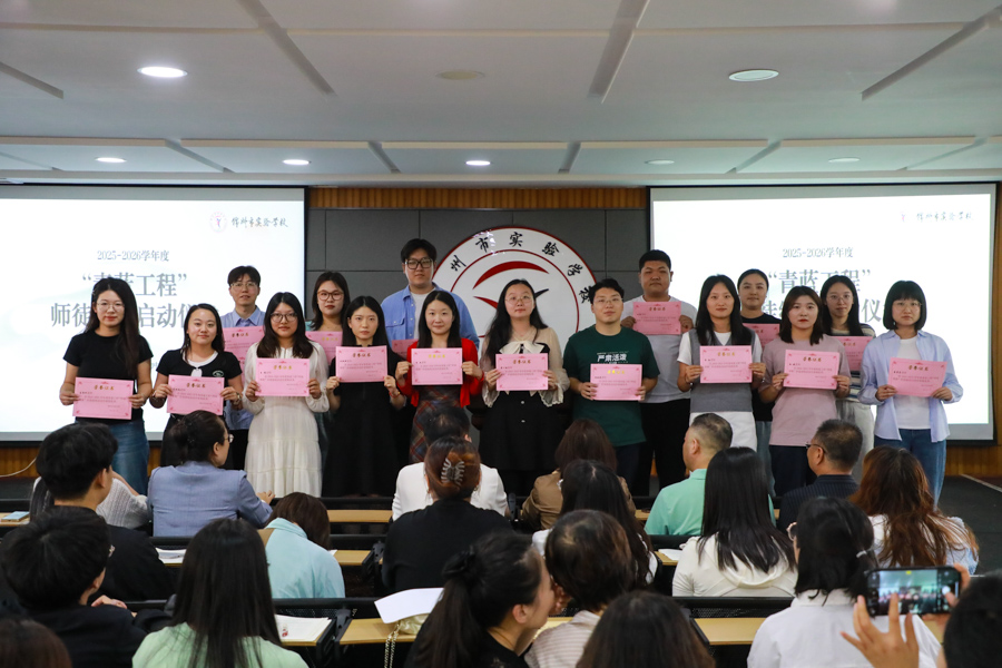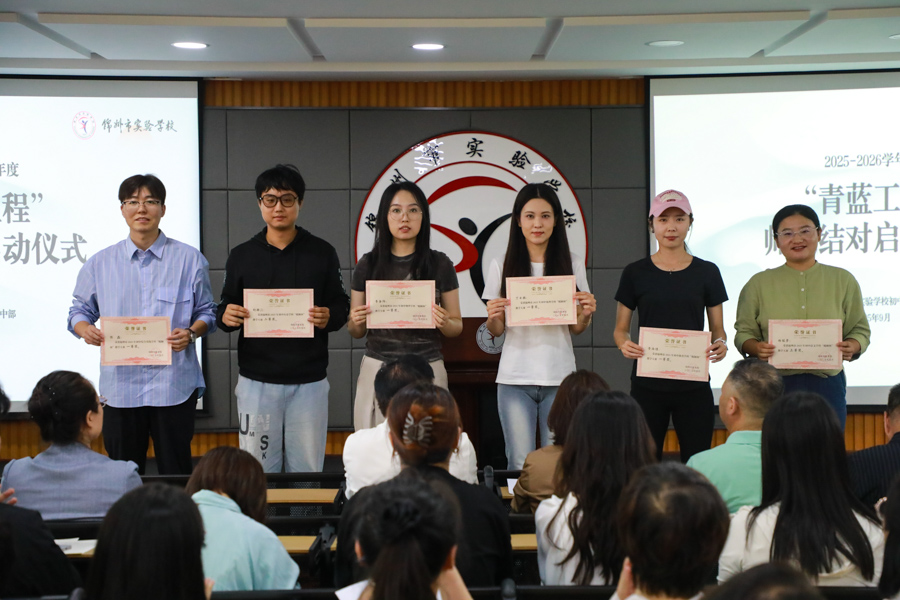 师徒双方共同签订“帮教组合”协议书;学校领导还为师父们颁发了聘任证书;表彰了2024-2025年度“青蓝工程”中表现优异的青年教师。教育的薪火在师徒的手中传递与燃烧。