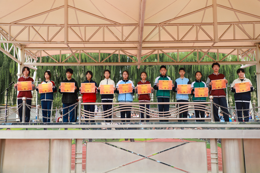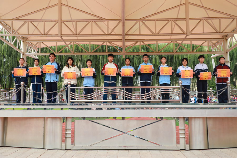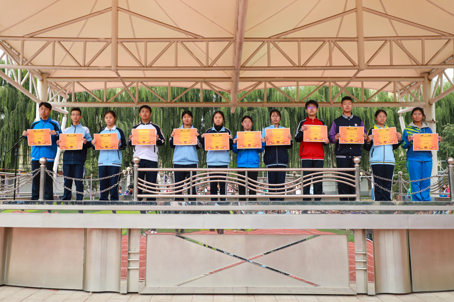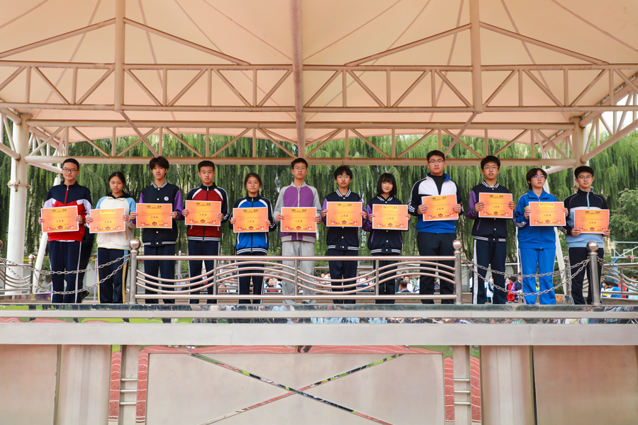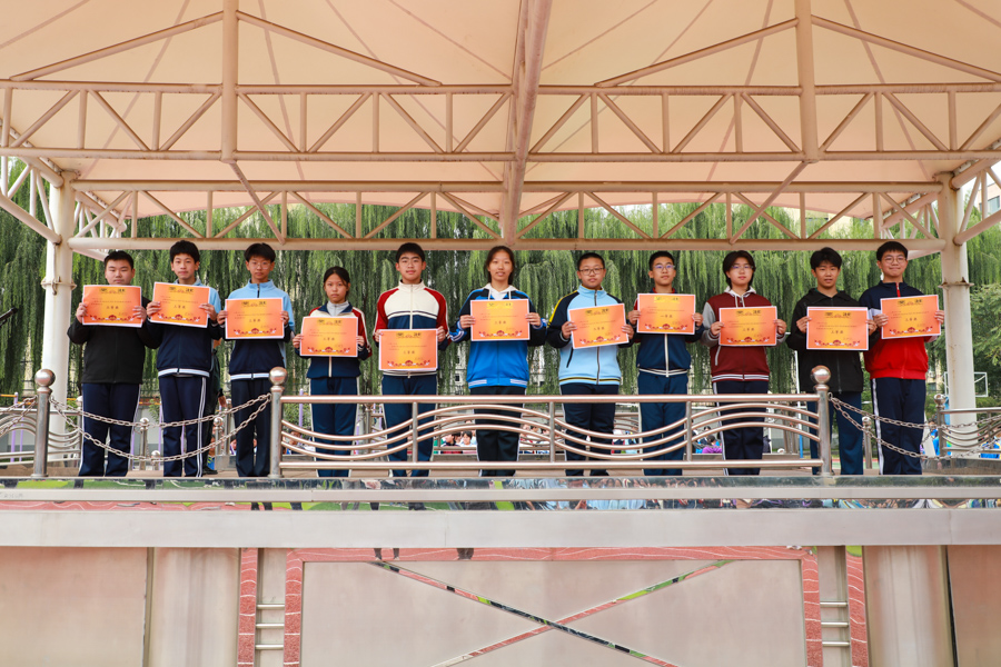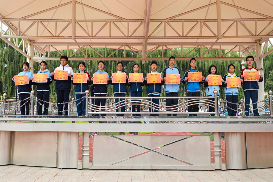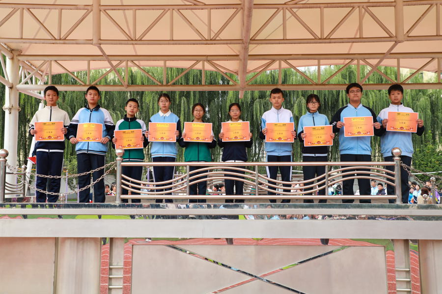 10月11日,锦绣校区对八九年级趣味运动会的各单项奖和团体总分奖项集中颁奖;对在田径运动会获得团体总分一二三等奖的班级分别颁发篮球、排球、羽毛球拍实物奖;对八年级获各类方队奖项颁奖。