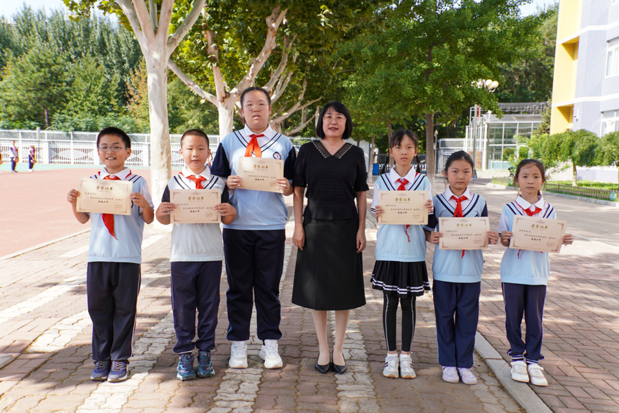 他待人真诚有礼貌,见师长主动问好,团结同学,总是在用温暖的行动传递善意,用文明的言行诠释美德,他是同学们学习的好榜样!他就是二年十六班的宁禹硕。