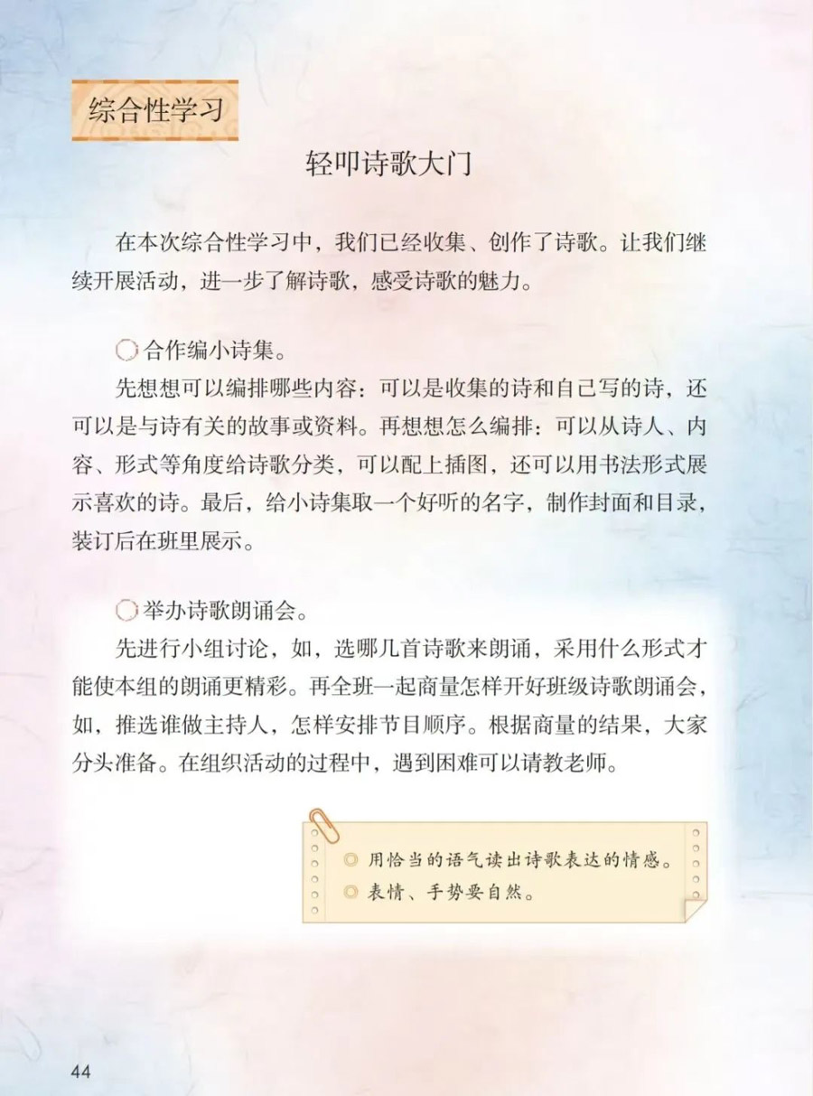 2、运用美术课所学知识,为诗歌绘制插图,为诗集创作封面等。