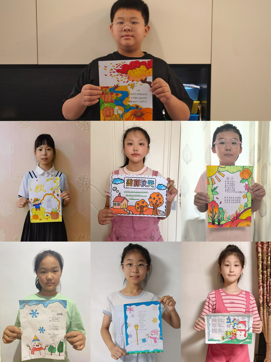 学习了现代诗的写作特点,孩子们都迫不及待地想大显身手。他们纷纷投入到诗歌创作中,将诗歌中的美好传递给更多的人。“每个孩子都是天生的诗人,而四季的密码藏在他们的笔尖。”在诗歌创编环节,孩子们以“春夏秋冬”为灵感源头,让季节元素在诗行中焕发童真光彩。
