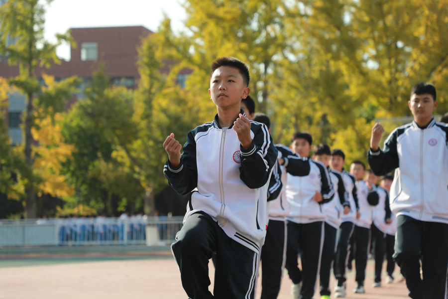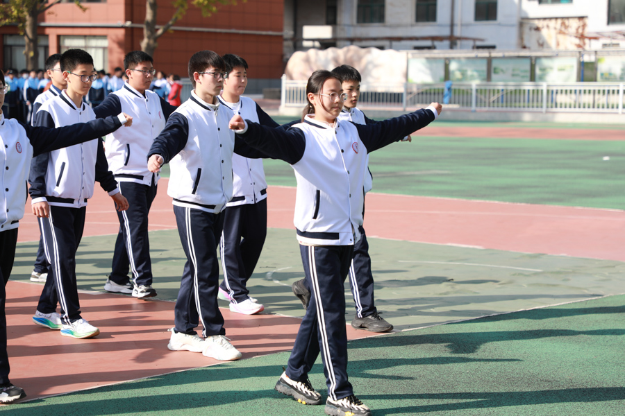 比赛中,各班队伍身着统一服装,迈着铿锵有力的步伐入场,展现出极强的集体荣誉感。从“原地踏步”的整齐划一,到“伸展运动”的舒展规范,再到“跳跃运动”的活力迸发,每一个动作都凝聚着同学们的汗水与默契。同学们身姿挺拔、节奏精准,每个班级队伍展现出最佳状态;台上评委则从进退场秩序、动作规范性、精神面貌等维度进行公平打分,现场掌声与喝彩声此起彼伏。