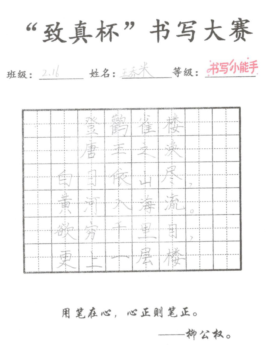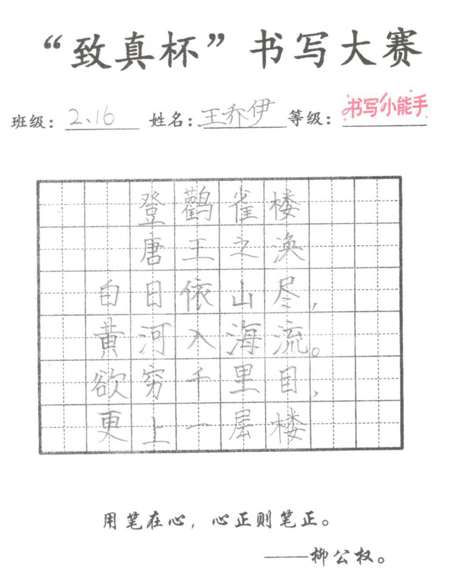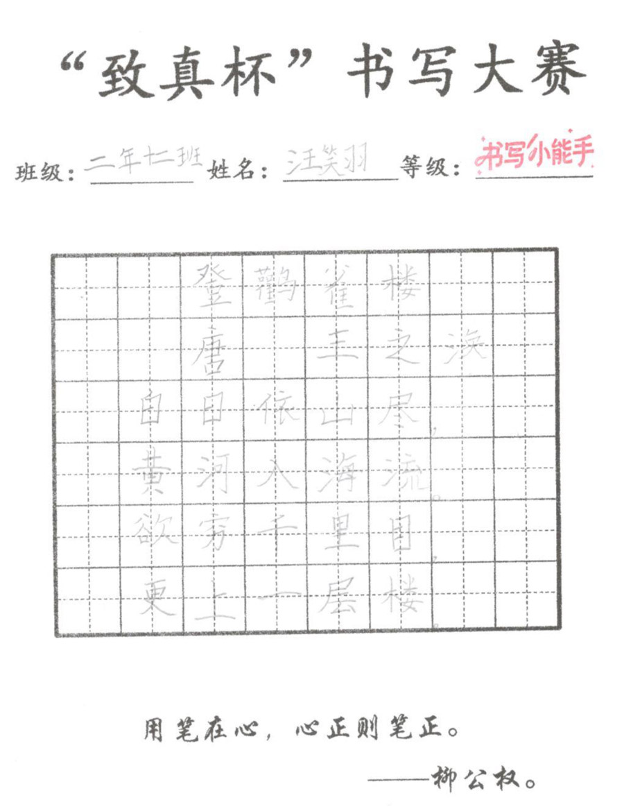 “致真杯”书写大赛优秀作品展(二年级)