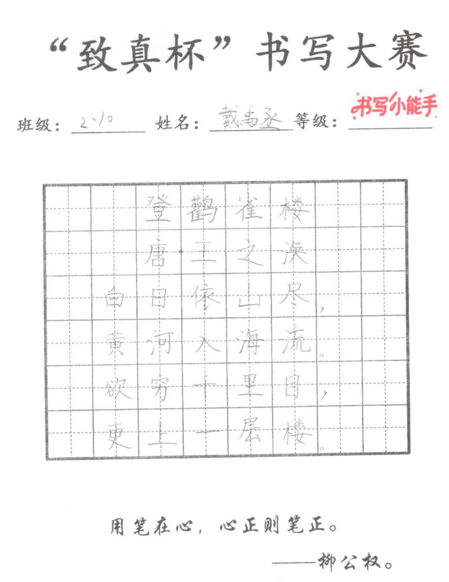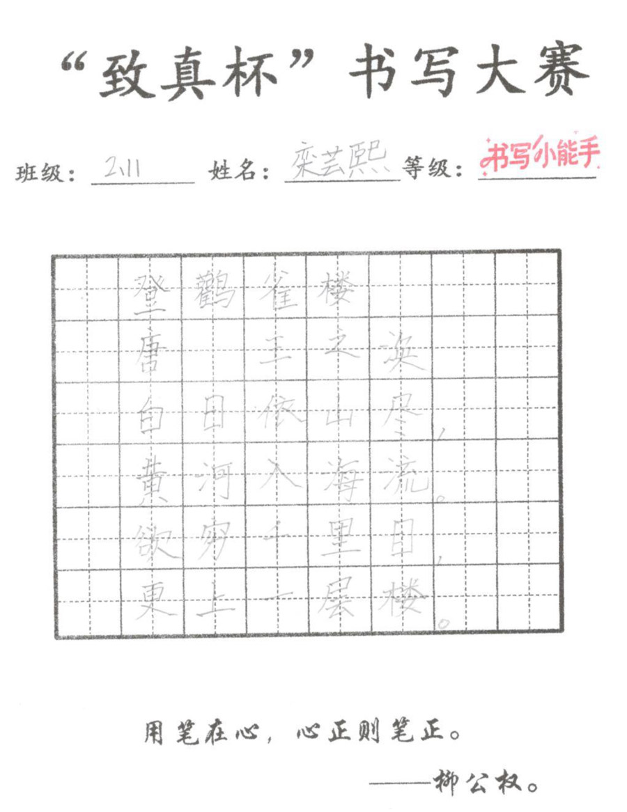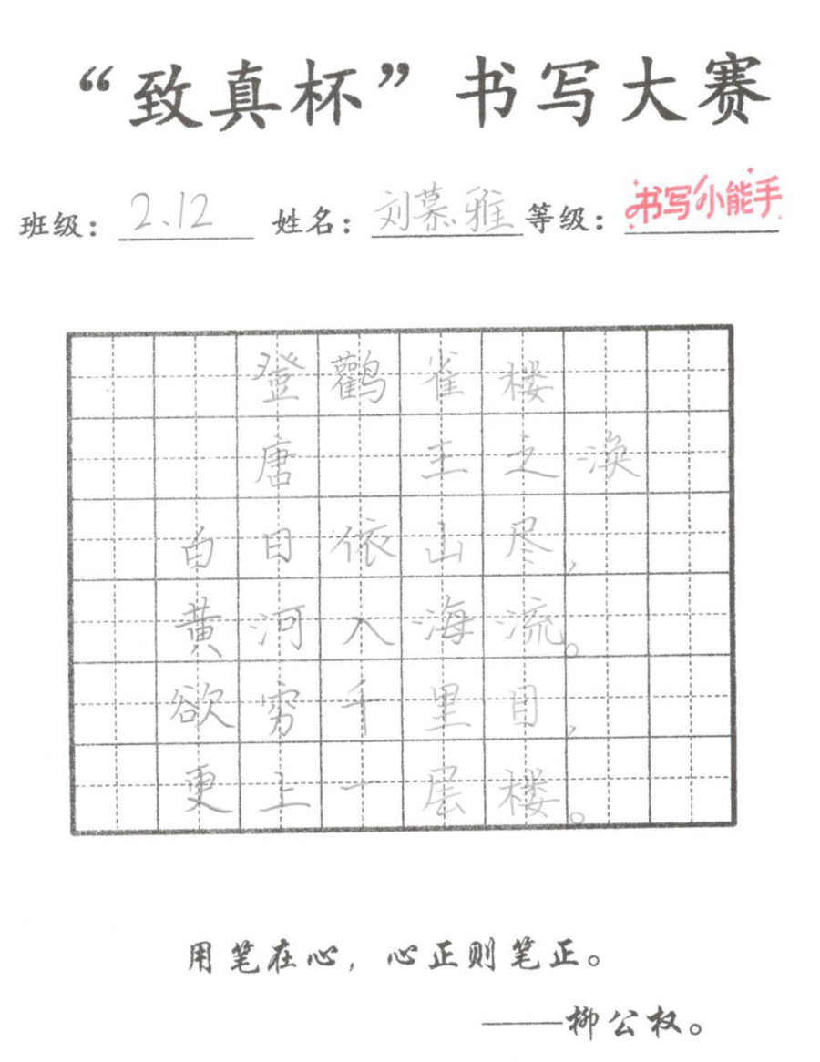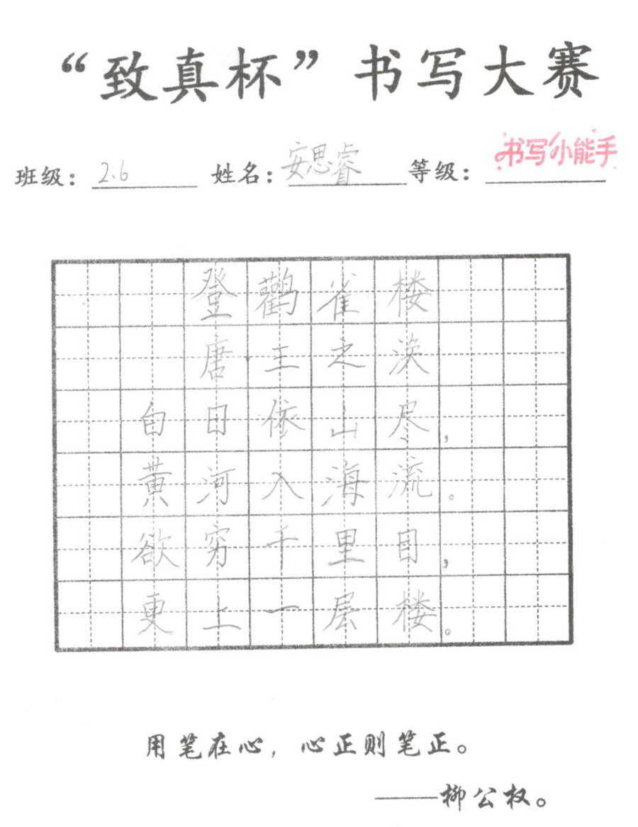 “致真杯”书写大赛优秀作品展(二年级)