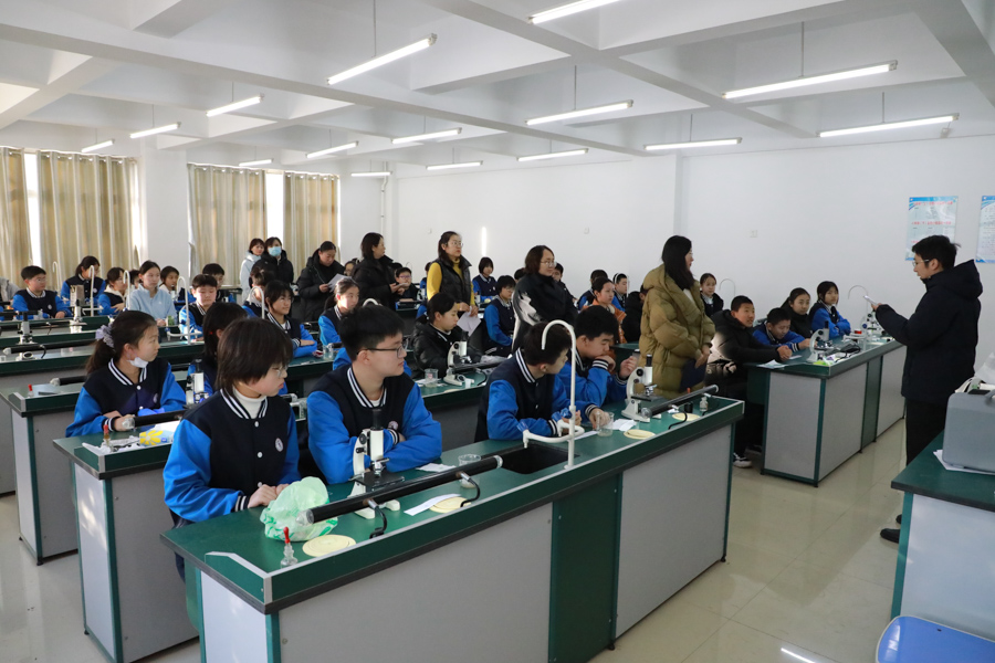 初中部科技节特色活动——“细胞星河,镜下寻踪”八年级生物实验技能大赛圆满落幕。这场以微观世界为舞台的竞赛,让学生们手执实验器材,在玻片之上雕琢细节,于目镜之中探寻生命的奥秘,不仅展现了扎实的生物实验功底,更让科学探究的种子在学生心中生根发芽。