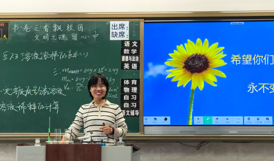 课堂上,卢翠云老师创设真实生活情境,以“营养液浓度表示、配制、稀释”三个进阶问题为主线,引导学生在解决实际问题中深化概念理解,课堂高效严谨,尽显模型建构的教学匠心。姜如松老师则以教材人物对话为线索,借助即梦AI将静态图片化为动态动画,让课堂趣味盎然。姜老师的课堂将知识融入欢笑,尽显灵动创新的教学智慧。配制溶液作为新课标要求的学生必做实验,两位老师均巧用希沃投屏放大实验细节,既放手让学生示范操作,又适时亲自指导,凸显实验教学的实效性。