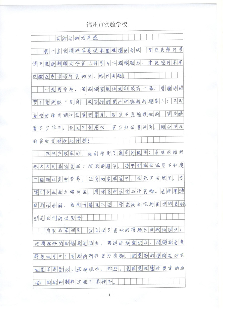 红领巾爱科学(渤海大学食品与工程学院参观感想)五年十二班陈梓萱
