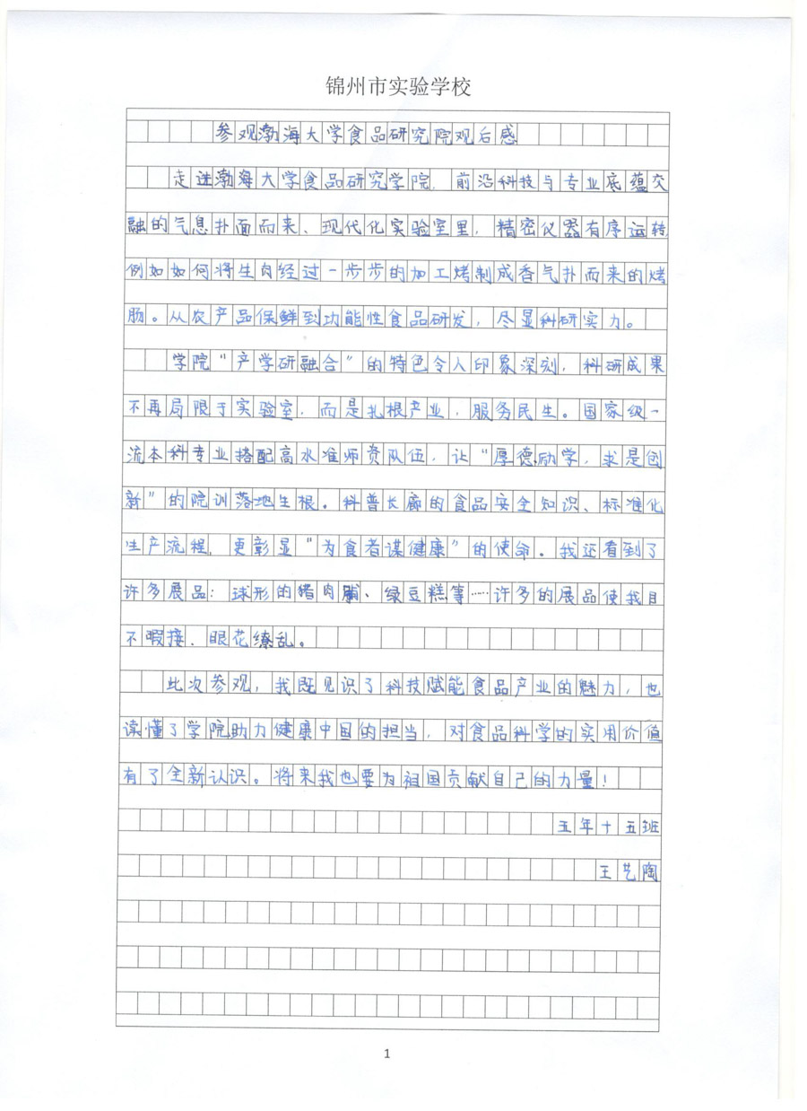 红领巾爱科学(渤海大学食品与工程学院参观感想)五年十五班王艺陶