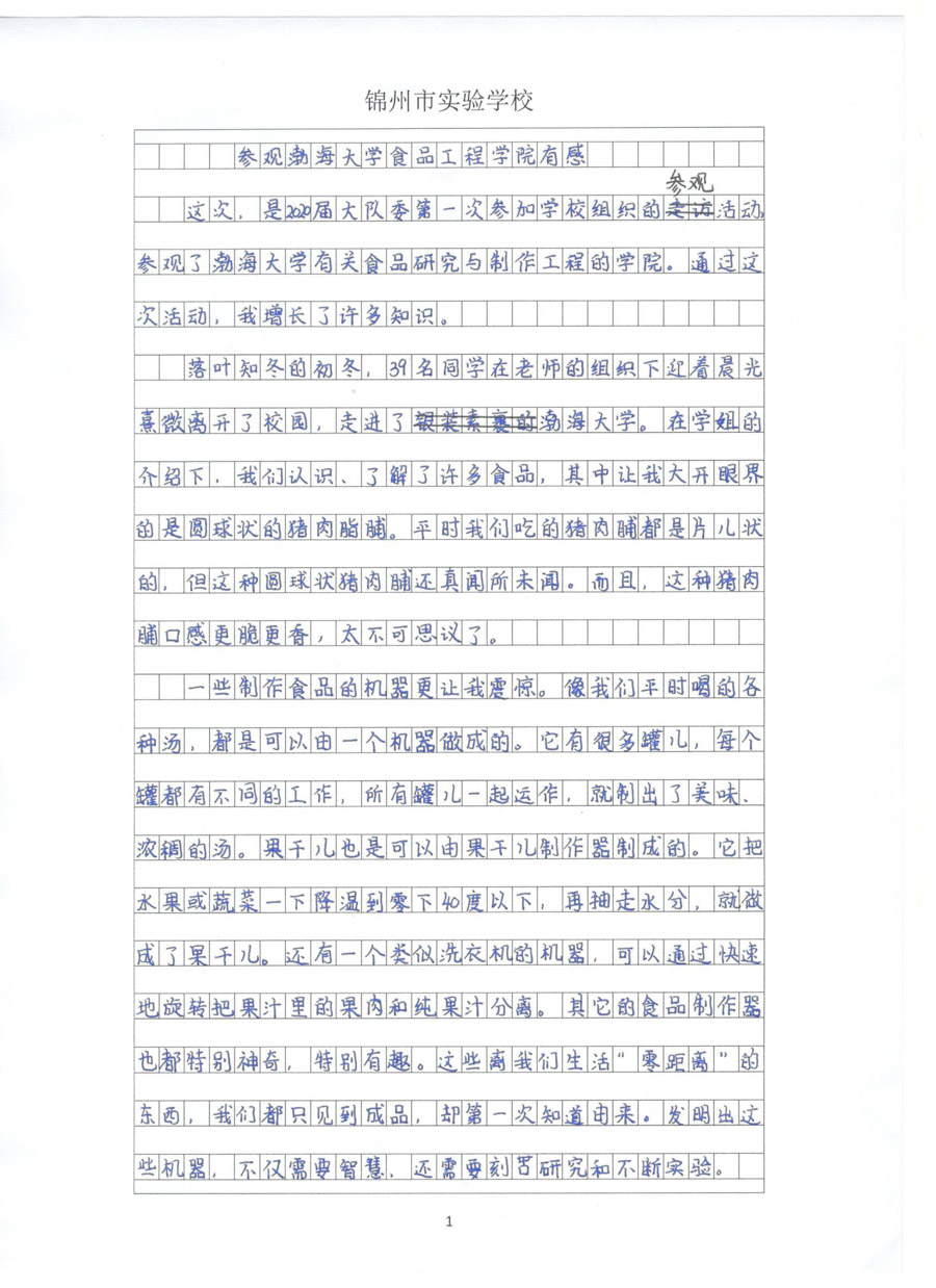 红领巾爱科学(渤海大学食品与工程学院参观感想)六年八班刘若萱