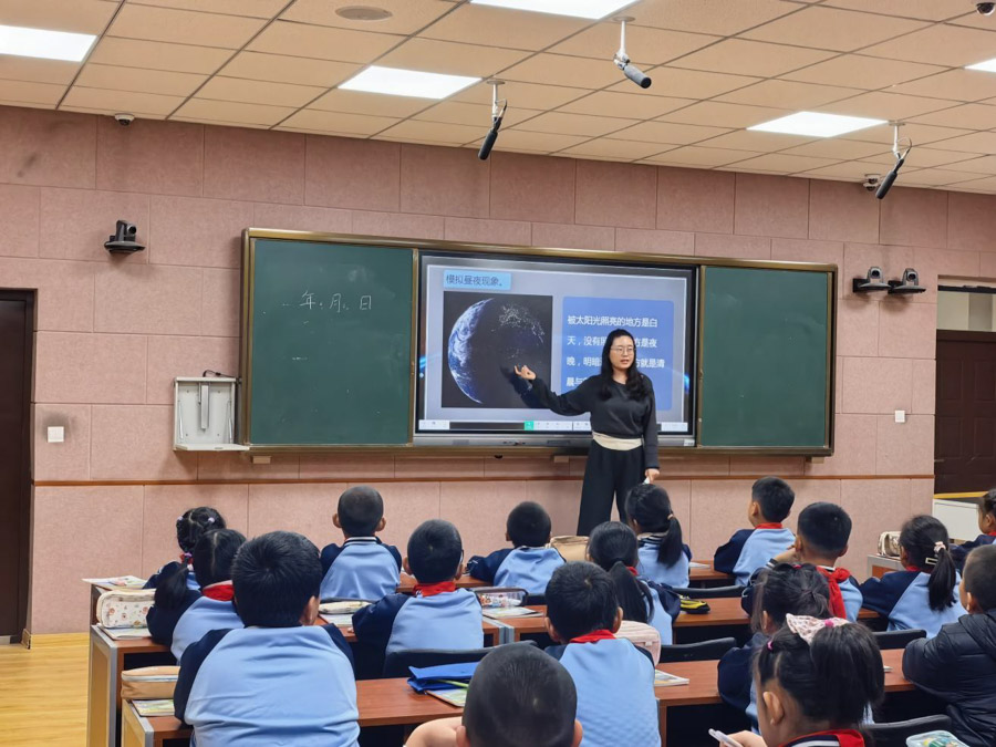 科学课堂围绕“年月日从何而来”展开,带领学生追溯时间背后的天文原理:地球绕太阳公转一周约为365天,形成“年”;月球绕地球公转一周约29.5天,划分出“月”;地球自转一周则为24小时,构成“日”。通过课堂上的生动讲解与直观演示,学生不仅理解了时间单位的科学起源,也为后续数学推算奠定了认知基础。