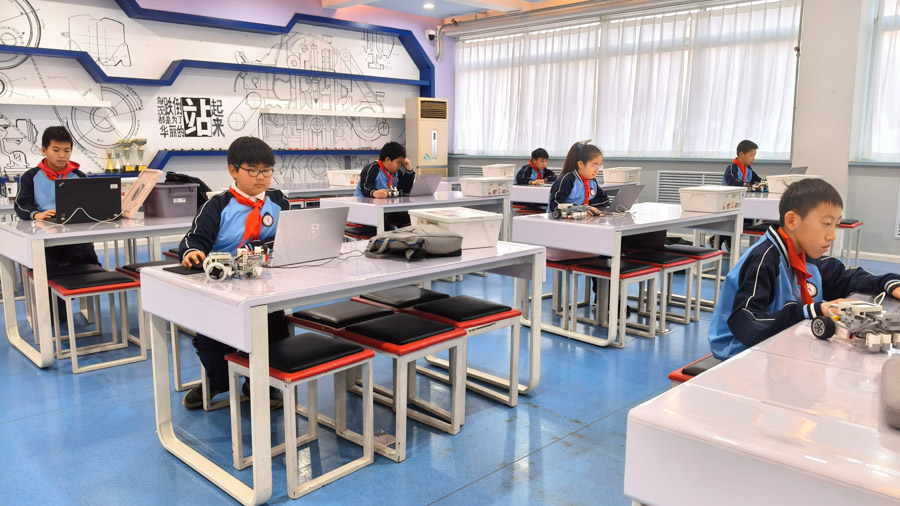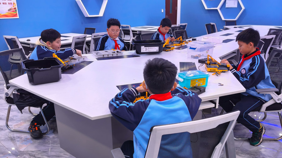此外,“致知”科技拓展课程中的小机器人队队员们,凭借勤于思考、乐于钻研的探索精神,在实操展示中尽显科学素养与创新能力,成为本次验收工作中的一抹亮色。