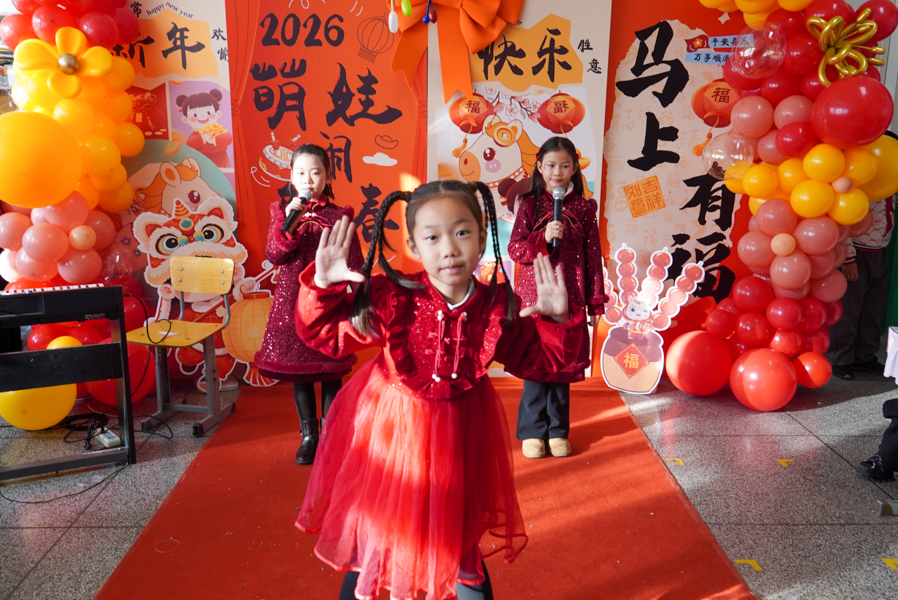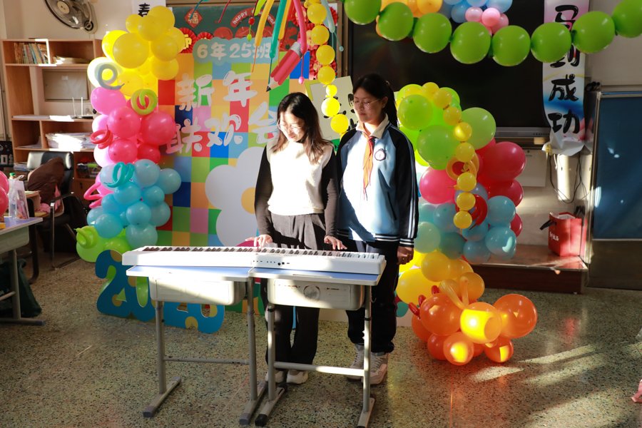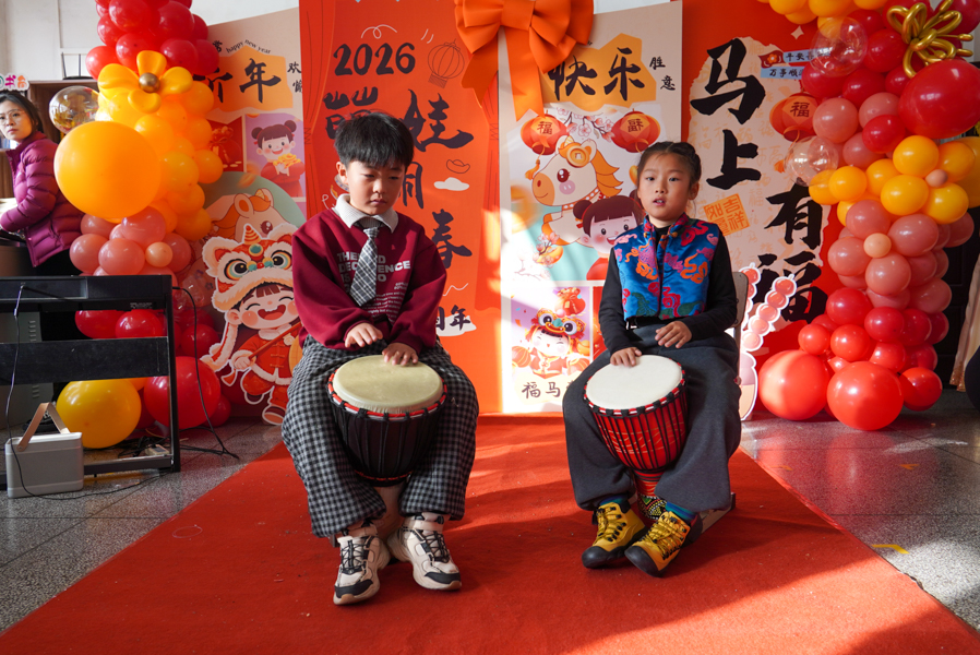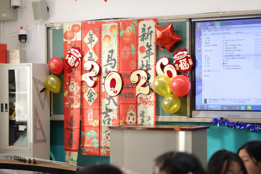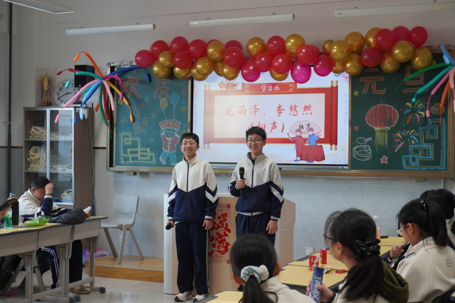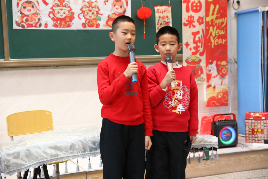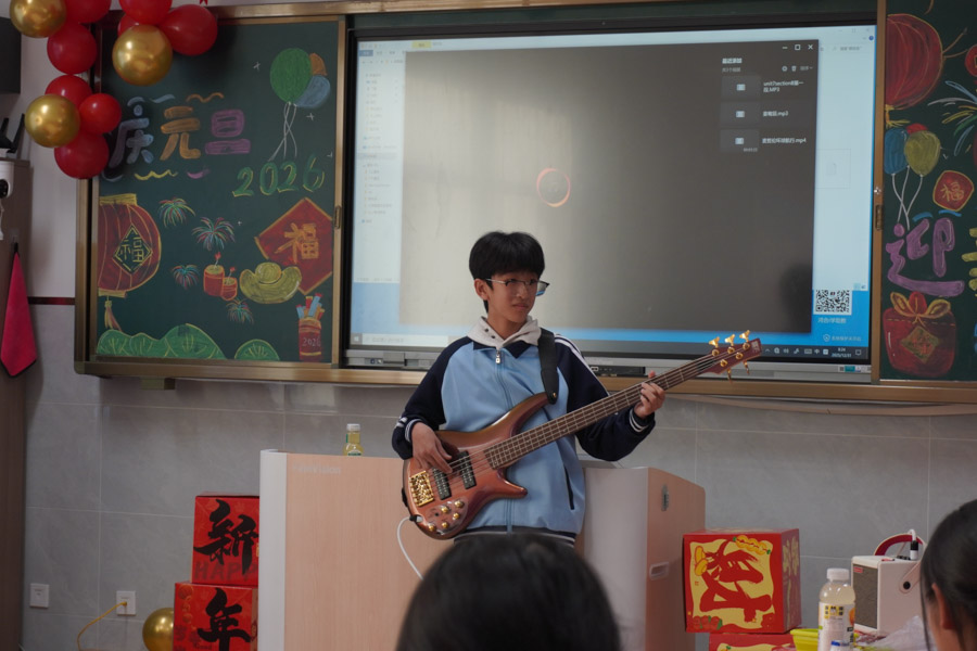 孩子们用歌声唱响新年,用舞姿舞动青春,共赴一场热闹非凡的新年之约!彩带、气球、红灯、“对联”……把热烈热情热火点燃。动感舞蹈活力全开,尽显少年意气风发。十八般乐器和鸣把阳光、春风,把振翅、扬帆尽情展现;传递无限憧憬与青春的烂漫;趣味小游戏热闹纷呈,猜灯谜、抢凳子、才艺接龙等等煮沸师生、同窗情谊;还有同学化身小小艺术家,书法、绘画现场展示,笔墨间尽显才情,间间教室变成了欢乐的海洋,每一张笑脸都格外灿烂,每一段时光都格外珍贵。