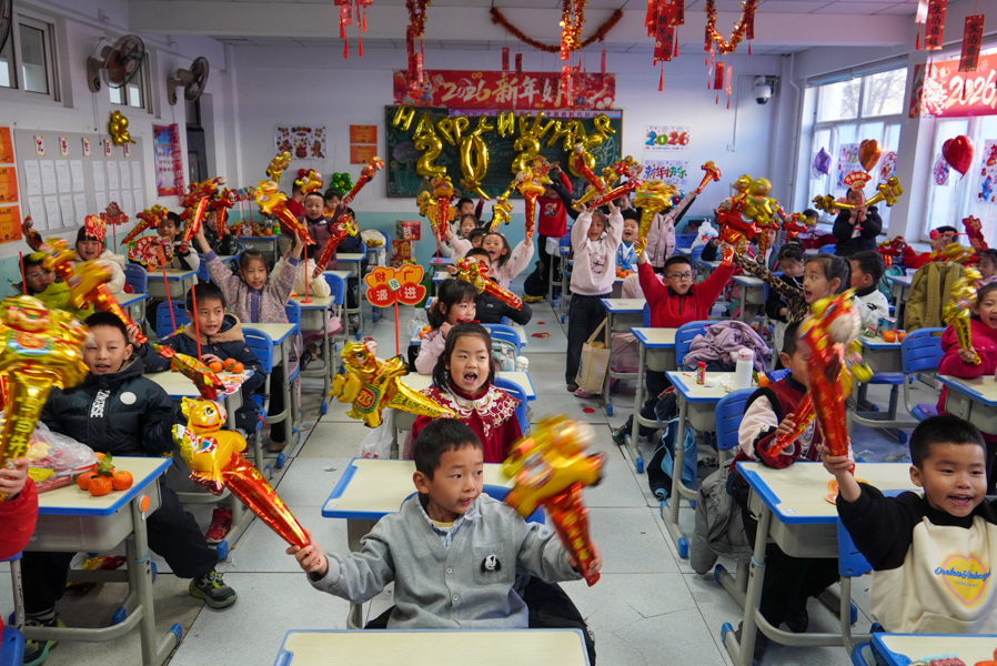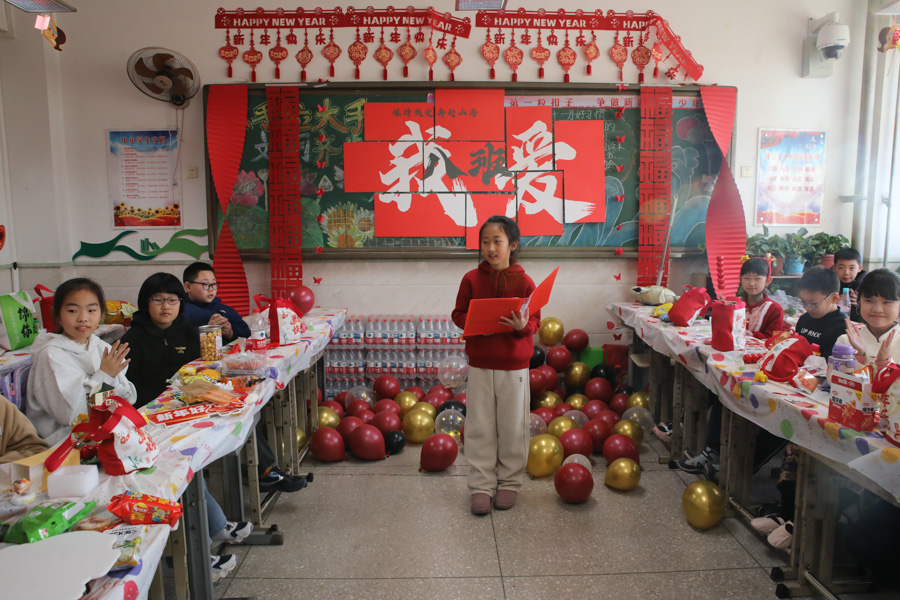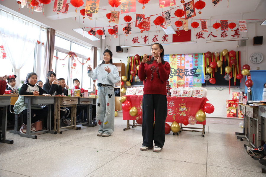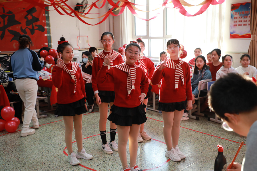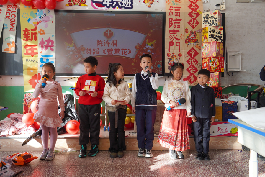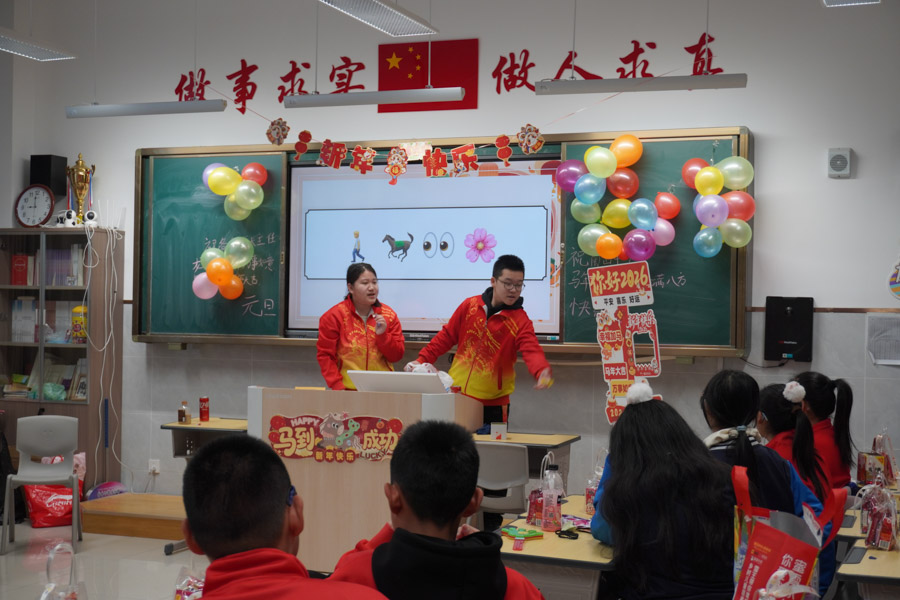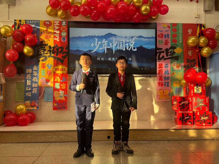 孩子们用歌声唱响新年,用舞姿舞动青春,共赴一场热闹非凡的新年之约!彩带、气球、红灯、“对联”……把热烈热情热火点燃。动感舞蹈活力全开,尽显少年意气风发。十八般乐器和鸣把阳光、春风,把振翅、扬帆尽情展现;传递无限憧憬与青春的烂漫;趣味小游戏热闹纷呈,猜灯谜、抢凳子、才艺接龙等等煮沸师生、同窗情谊;还有同学化身小小艺术家,书法、绘画现场展示,笔墨间尽显才情,间间教室变成了欢乐的海洋,每一张笑脸都格外灿烂,每一段时光都格外珍贵。