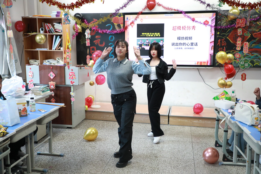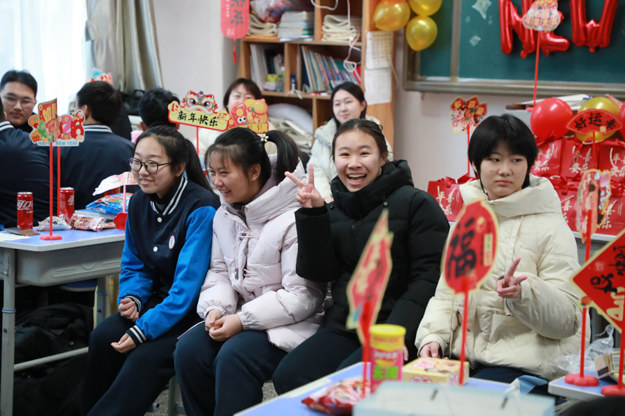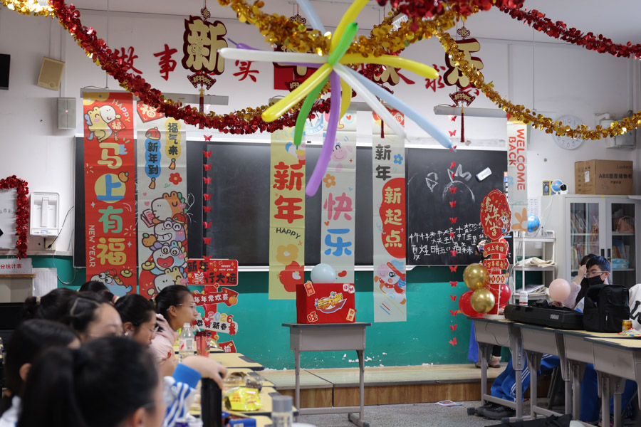 老师们也融入其中,与同学们一同唱歌、游戏,分享新年祝福,温柔的叮嘱、暖心的鼓励,让现场暖意浓浓。大家在欢声笑语中告别过往,在温馨相伴中喜迎新年,尽情享受着校园生活的欢乐与美好,定格下青春里独一无二的新年记忆。