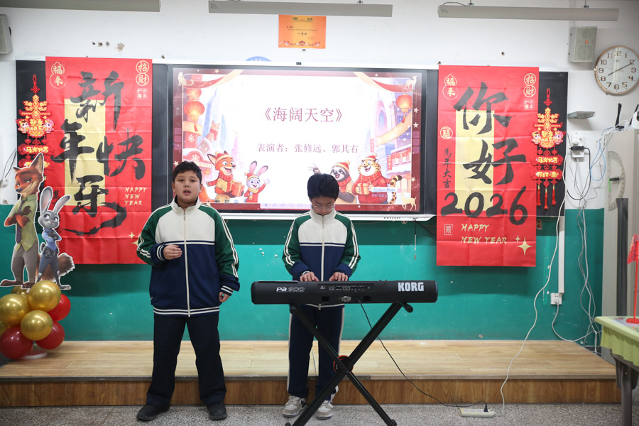 “旧岁已展千重锦,新年再进百尺竿”欢乐落幕,美好启程。2026新年联欢会,让同学们在紧张的学习之余放松身心,收获了快乐与感动,体验了温暖与幸福。新的一年,愿每一位少年都能心怀热爱,向阳而生,在青春的赛道上奋力奔跑,不负时光,不负自己,在新的一年里收获成长与荣光!