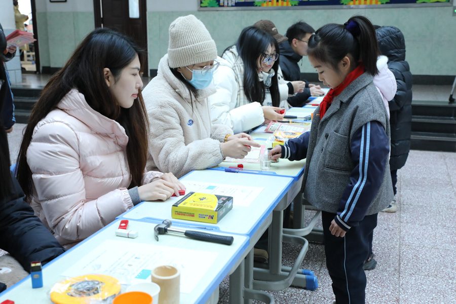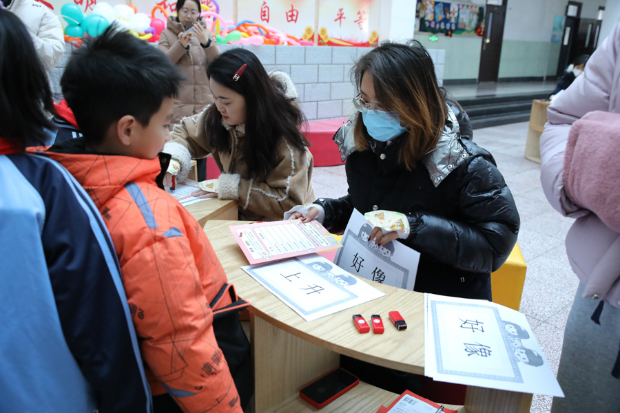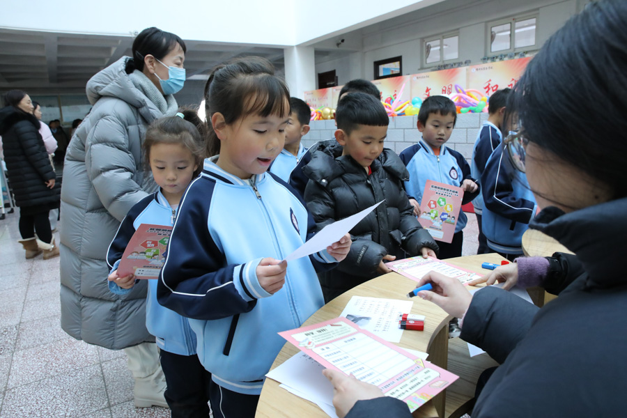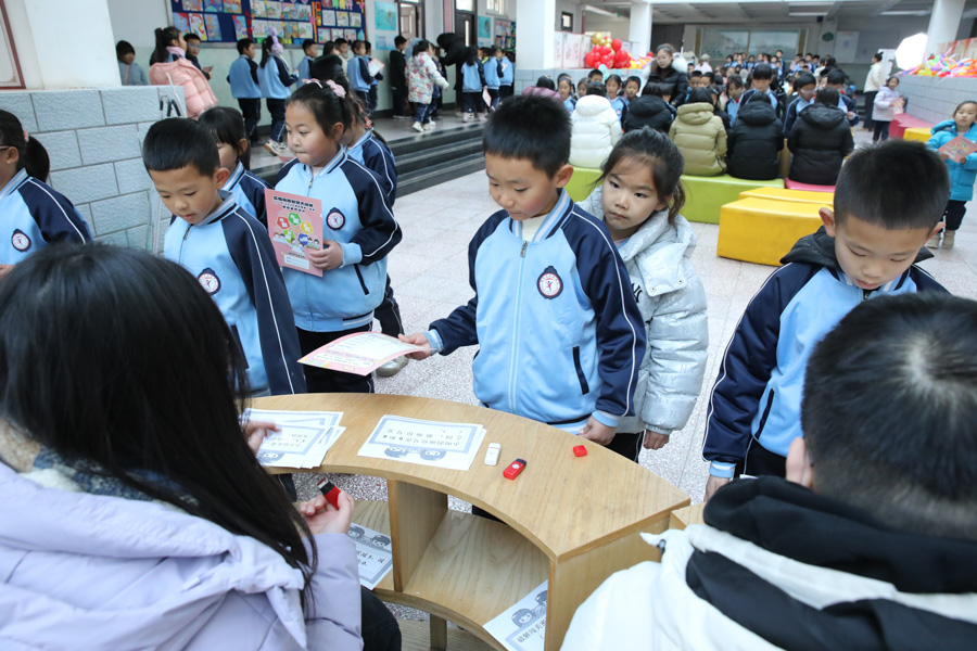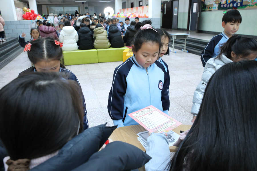 “叮铃铃——”上课铃变成了闯关集结号!1月7日,学苑校区一、二年级的小萌娃们举着花花绿绿的闯关卡,像一群叽叽喳喳的小麻雀,蹦蹦跳跳冲向“萌娃大闯关”的各个阵地啦!