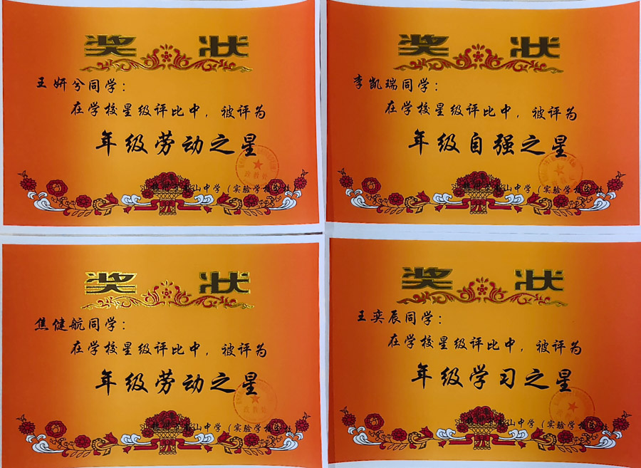七年四班焦健航 劳动之星