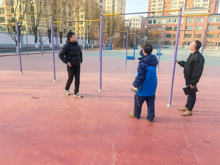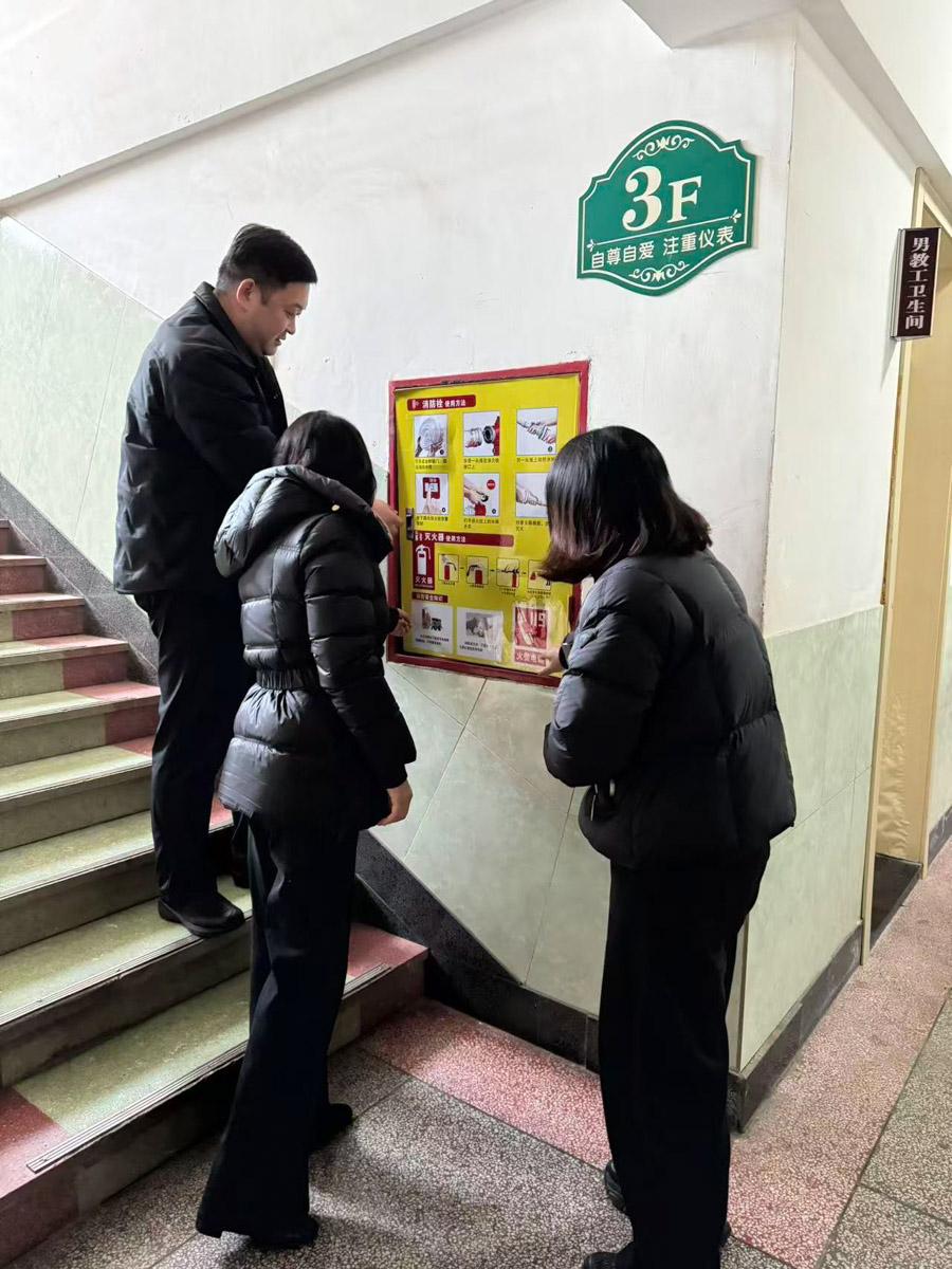 检查组重点对教学楼、食堂、体育馆等场所的消防设施、疏散通道进行细致检查,确保消防器材完好有效,疏散通道畅通无阻。同时,实地查看了校门口硬隔离设施牢固情况,并要求加强安保力量,确保师生出入安全。对校舍建筑及外墙,检查组进行了全面排查,对发现的墙面脱落等问题,当即上报责任部门限时整改,消除潜在风险。此外,检查组还对体育器材的稳固性、校园内周边排水沟的畅通情况以及下水井盖的完好状况进行了逐一检查,确保各类设施正常运转,防范于未然。
