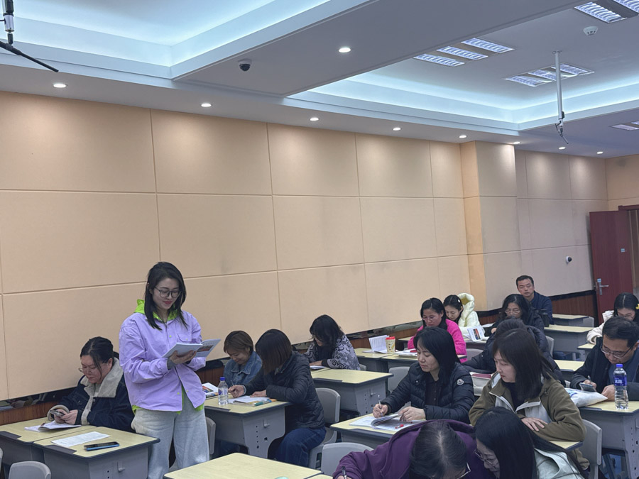 张丽老师说课:“本次九年级英语课以 5E 教学法展开,聚焦濒危动物保护,融中考考点于教学,实现知识与素养双提升。Engagement 环节用鲨鱼短视频激趣导入,激活旧知;Exploration 环节从核心单词切入文本,融入 By doing 用法等三大中考题型,学练结合;Explanation 环节通过提炼保护建议、鲨鱼视角复述课文,深化理解并内化知识;Elaboration 环节组织设计保护海报,拓展讲解五种濒危动物保护方法,拓宽视野;Evaluation 环节用三级评价体系,课后分层作业实现因材施教。”