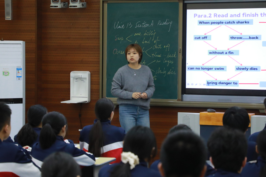 来自九年级备课组的张丽老师和张萍萍老师以九年级Unit13 Section A 3a-3b “Save the sharks!” 为教学内容,紧扣 “人与自然--生态保护” 核心主题为大家呈现了匠心设计打造下的别样课堂。全体英语教师参与听课、评课与深度研讨。