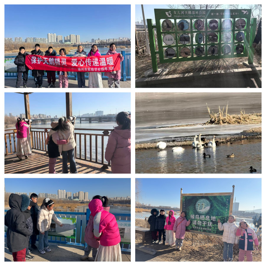 第三小组在组长吕名扬、秦康源的带领下共同来到了锦州市女儿河天然湿地公园,认真学习天鹅保护知识,了解候鸟习性与生存现状,观测天鹅活动状况,主动捡拾岸边垃圾,清理杂物,为天鹅营造干净、安全的栖息环境。队员们还化身“文明宣传员”,呼吁大家文明观赏、不投喂、不惊扰,用实际行动守护人与自然和谐共生的美丽家园。