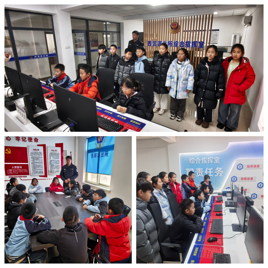 第四组在组长刘芊佚、刘冠迪的带领下来到了西郊派出所,参观了综合指挥室、户籍大厅等场所,警察叔叔为同学们讲解了法律基本知识和反诈知识,并就雷锋精神进行了交流,讲述了警队中助人为乐、无私奉献的故事,同学们发现原来雷锋精神就藏在一通通及时出警的电话里,藏在一件件户籍业务中。