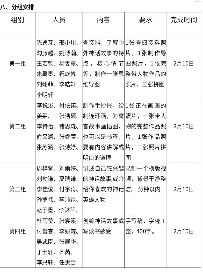 3.完成神话主题手抄报创作与读书感受撰写,提升信息筛选整合、图文创意表达、书面抒情议论的能力;通过故事分享,锻炼口头表达与逻辑思维能力。