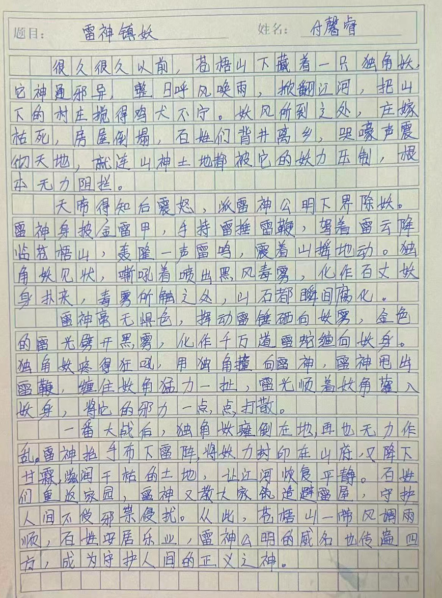 本次语文综合实践活动,是一场兼具文化厚度、思想深度与育人温度的沉浸式学习。学生在自主搜集、梳理对比、创意表达、感悟升华的完整过程中,不仅拓宽了文化视野,丰富了神话知识储备,更在自主探究中提升了信息处理、逻辑思辨、口头表达与书面写作能力。在中外文化的碰撞与传统经典的浸润下,学生进一步理解了英雄精神、责任担当与人文情怀,懂得了敬畏传统、尊重差异、坚定文化自信。整个活动以文化人、以文育人,将知识学习、能力培养与品格涵养有机融合,真正促进了学生语文核心素养与人文素养的协同发展,为学生的精神成长留下了深刻而温暖的印记。