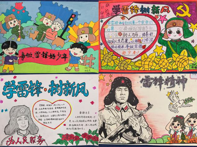 然后,同学们根据自己的收获和感悟,绘制了精美的绘图画作品和手抄报,借助班级展板,宣传雷锋精神,也提醒自己,学习和践行雷锋精神应该坚持在日常生活的每一天。