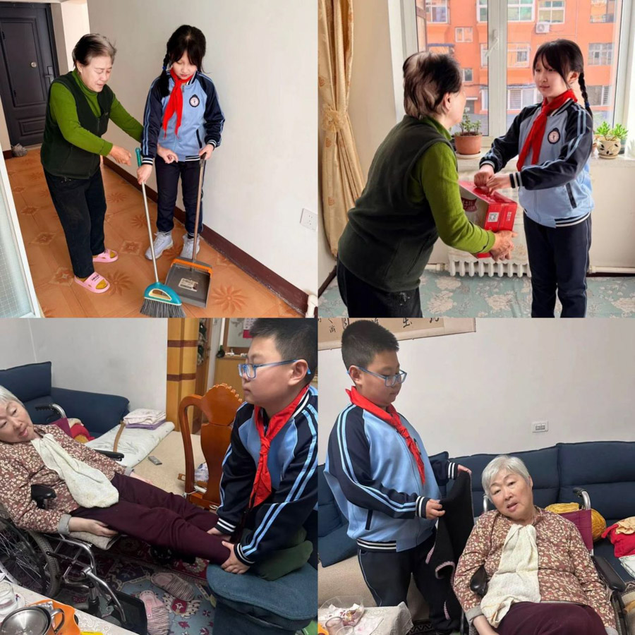 慰问小分队: 部分同学去探望了社区里的孤寡老人。帮老人打扫卫生,给老人按摩,还给奶奶表演了节目。老奶奶激动地说:“你们真是一群小雷锋!”
