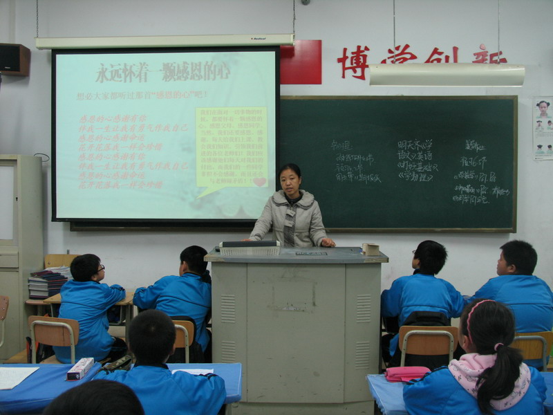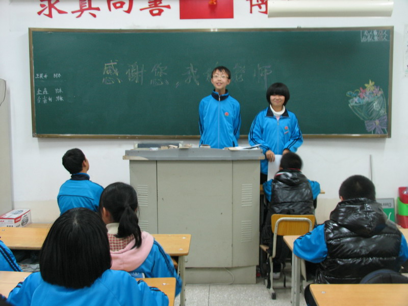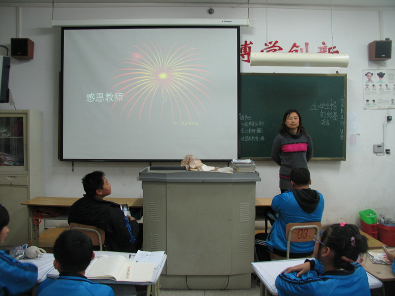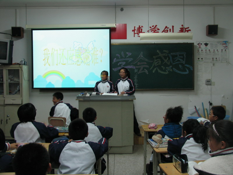 11月30日下午第八节课,实验学校初中部各班在教室里开展了《亲情浓浓》主题班会活动。以此迎接感恩节的到来。