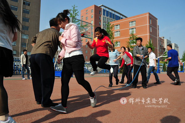 为了丰富教工的课余文化生活,增强教师队伍的凝聚力,提高全体教职工的身体素质,让实验人在简单和谐的环境中全身心的投入工作。校工会继4月27日组织小学部及行政组开展了“我运动、我团结、我快乐”为主题的“教工跳绳健身”活动后,于2011年5月11日下午组织了初中部活动,教职工以饱满的热情参加了本次活动。