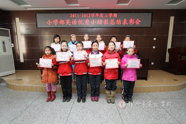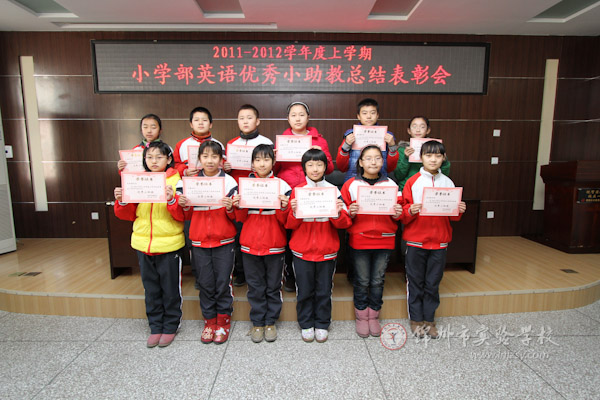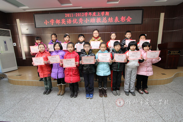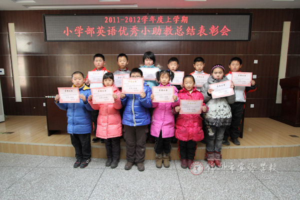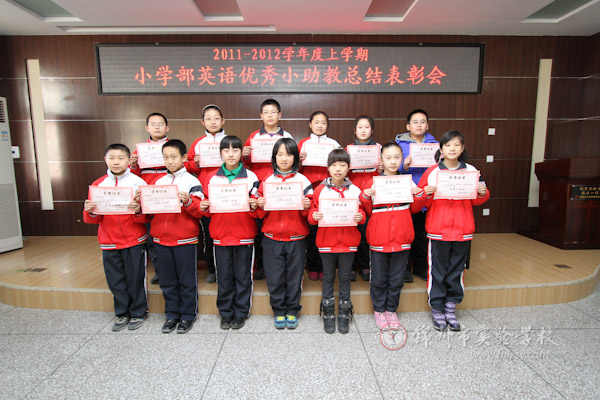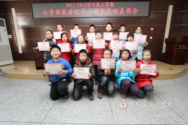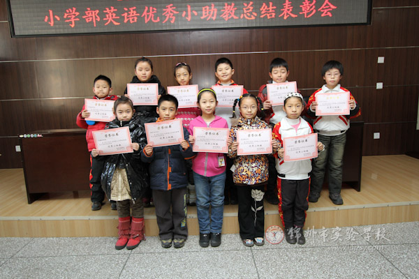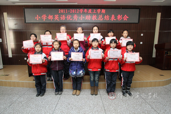 2012年1月6日上午,小学部“英语优秀小助教总结表彰会”在小学多功能教室召开,119名学习成绩突出、助教业绩显著的小助教被评为“英语优秀小助教”。