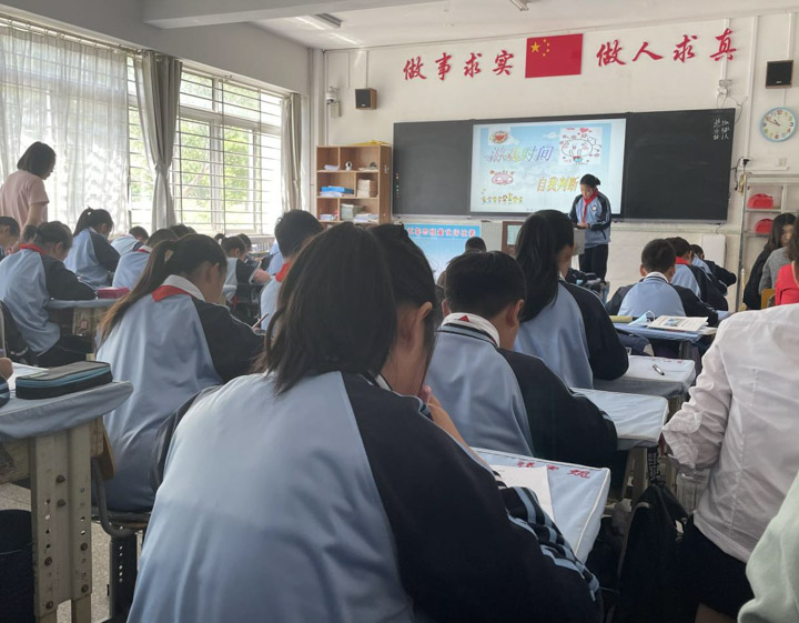 班会课,由学习委员张一欣和老师一起主持。进入青春期的孩子们小心结越来越多。经过课前了解调查之后,班会课上首先展开了说说你的心情小故事环节,与大家分享。