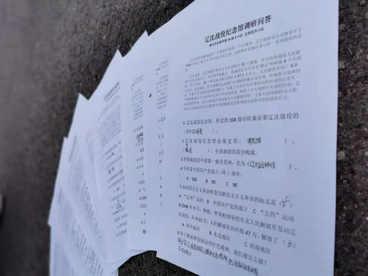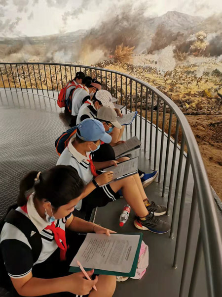 通过参观学习,记录资料,观看全景画的录音讲解后,第一小队的队员们完成提前设计的调研问卷,对关键性问题重新加深了理解和记忆。