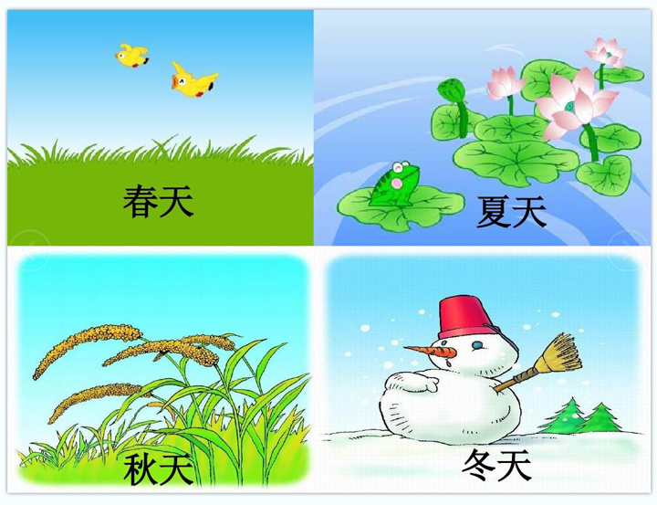 四季是多彩的,有桃红柳绿生机勃勃的春天,有烈日炎炎的夏天,有落叶金黄的秋天,有银装素裹的冬天,四季的美总是给人带来无限的遐想。在一年级上学期时,学生们学习了一篇有关季节的儿歌——《四季》,作者通过对春天的草芽、夏天的荷叶、秋天的谷穗和冬天的雪人这几种具有代表性的事物进行描述,表现了春夏秋冬四季的不同特点,学生们在学习这首富有童趣的儿歌时,也难掩欣喜,兴奋地将自己了解到的四季汇编成儿歌等。