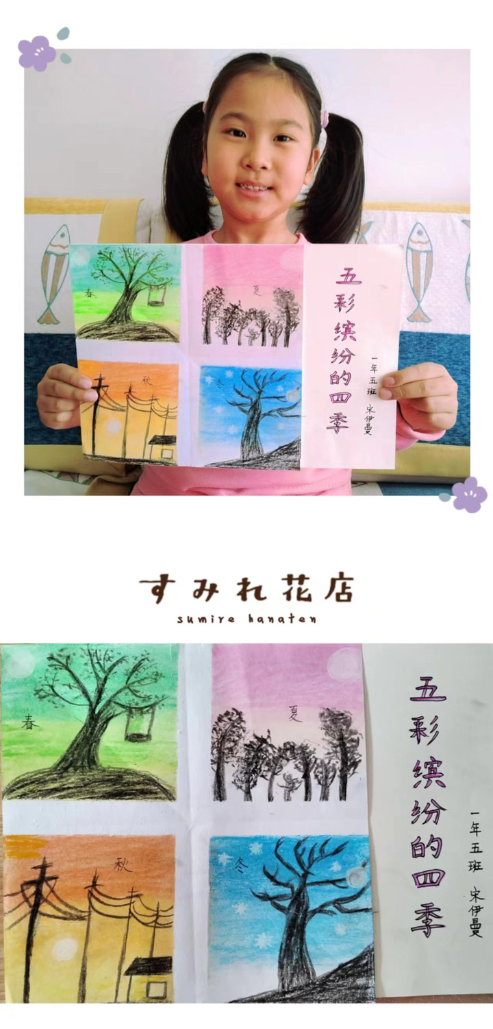 宋雨霏和王艺超同学绘制的《春夏秋冬》图在李老师的指导下改造成了四季书签