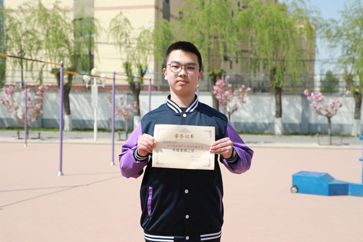 以诚实守信为准则,以勇于承担为风格。作为班级的劳动委员,疫情期间义不容辞的为同学取饭,平时以身作则把日常值日工作安排的井井有条,为同学们创造一个干净整洁的学习环境,是同学喜欢,老师、家长放心的好孩子。他就是九年二十二班的美德之星——赵晨皓。