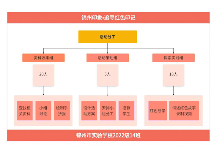 为教育引导学生传承党的优良传统,弘扬革命精神,增强爱国主义情感,锦州市实验学校2022级14班班主任李兵老师将十四班的同学进行项目化学习分组,明确各组分工。同学们热情高涨,全班参与。