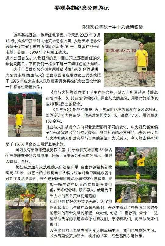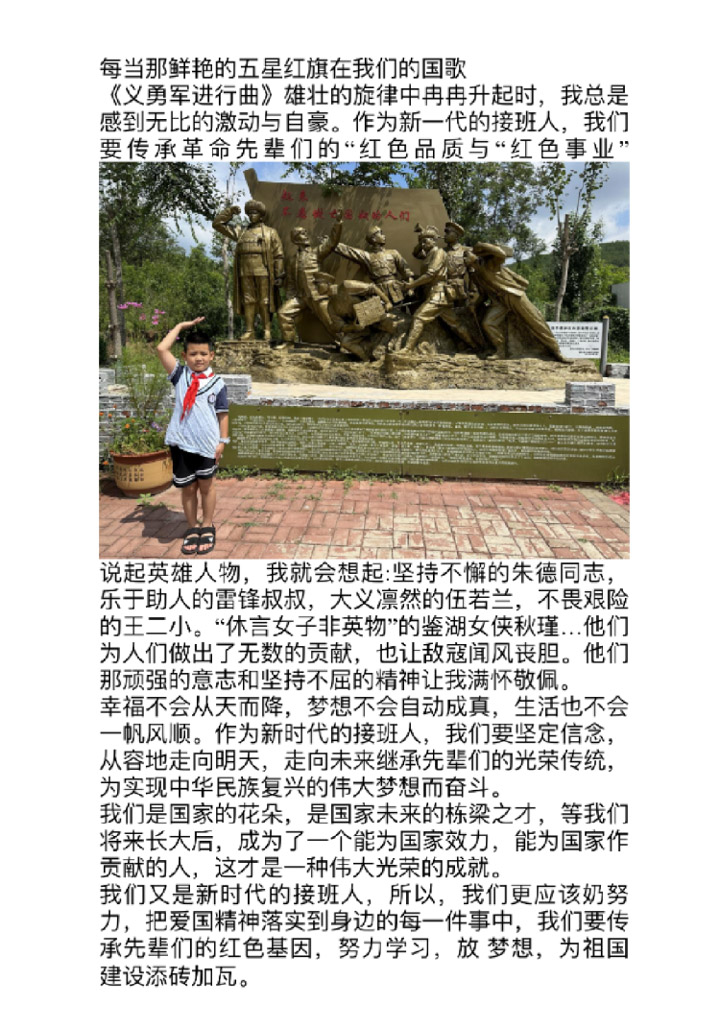 利用假期时间,孩子们纷纷走进了红色基地,参观了红色遗址,在不断深入的了解学习中,增长了历史知识,提升了自己的爱国觉悟。