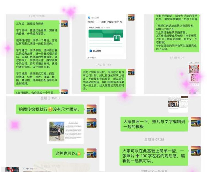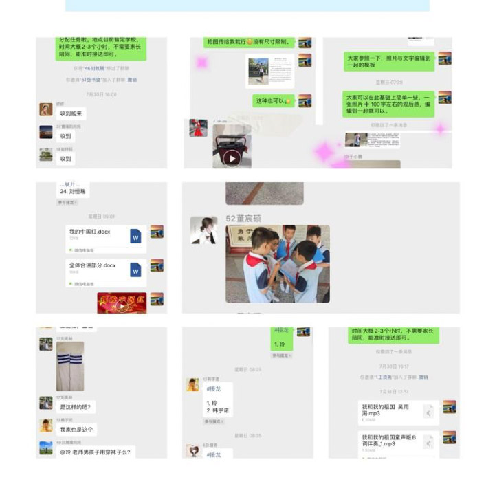 首先孩子们选择自己擅长的项目组成了一个个小团队,接着在家长的引导下上网查阅资料,选取自己感兴趣的内容,然后各个小队开始组内分工练习,线上彩排。