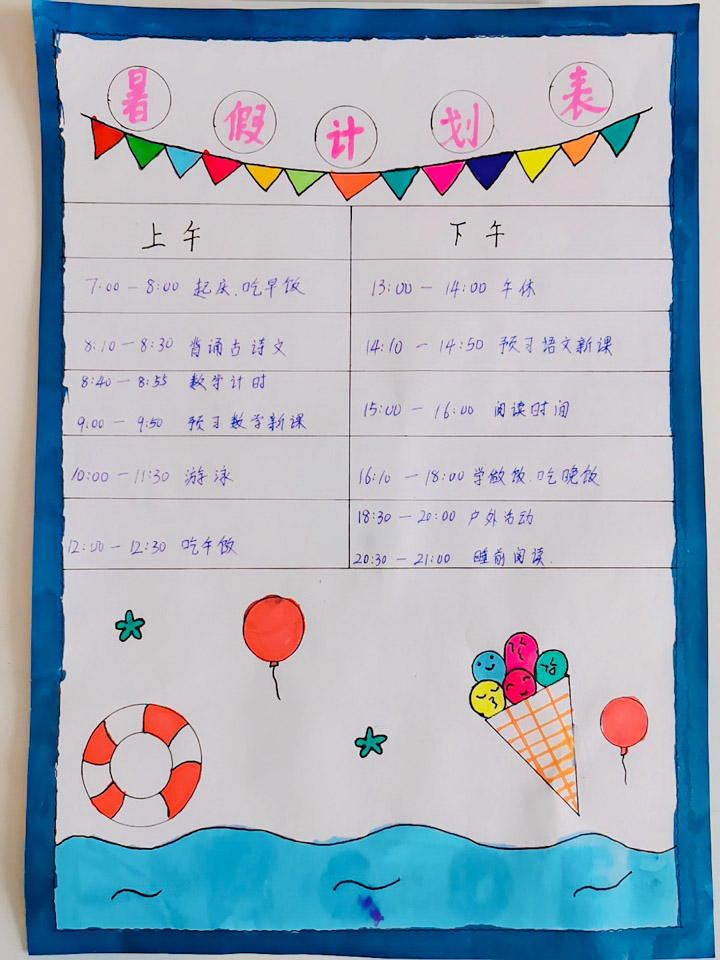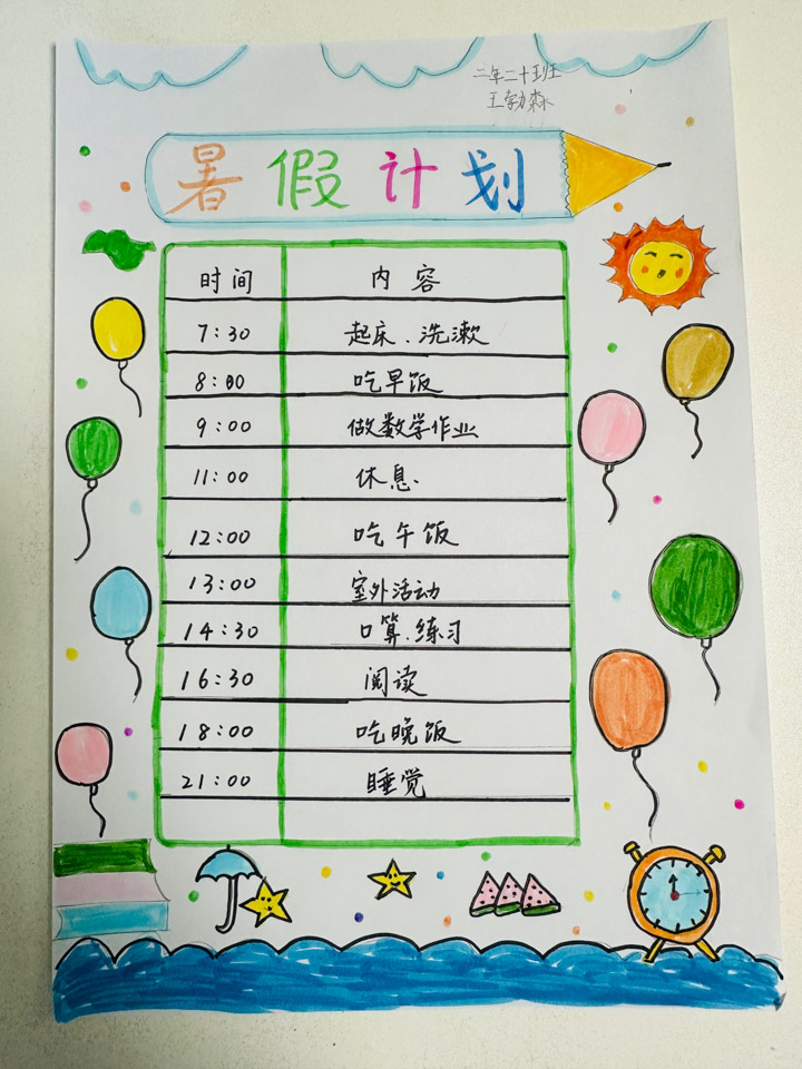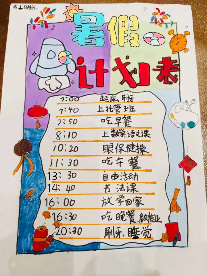 姜凯乔同学的暑假时间规划: