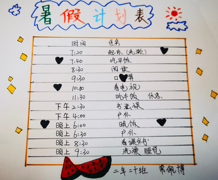 常佩博同学的暑假时间规划: