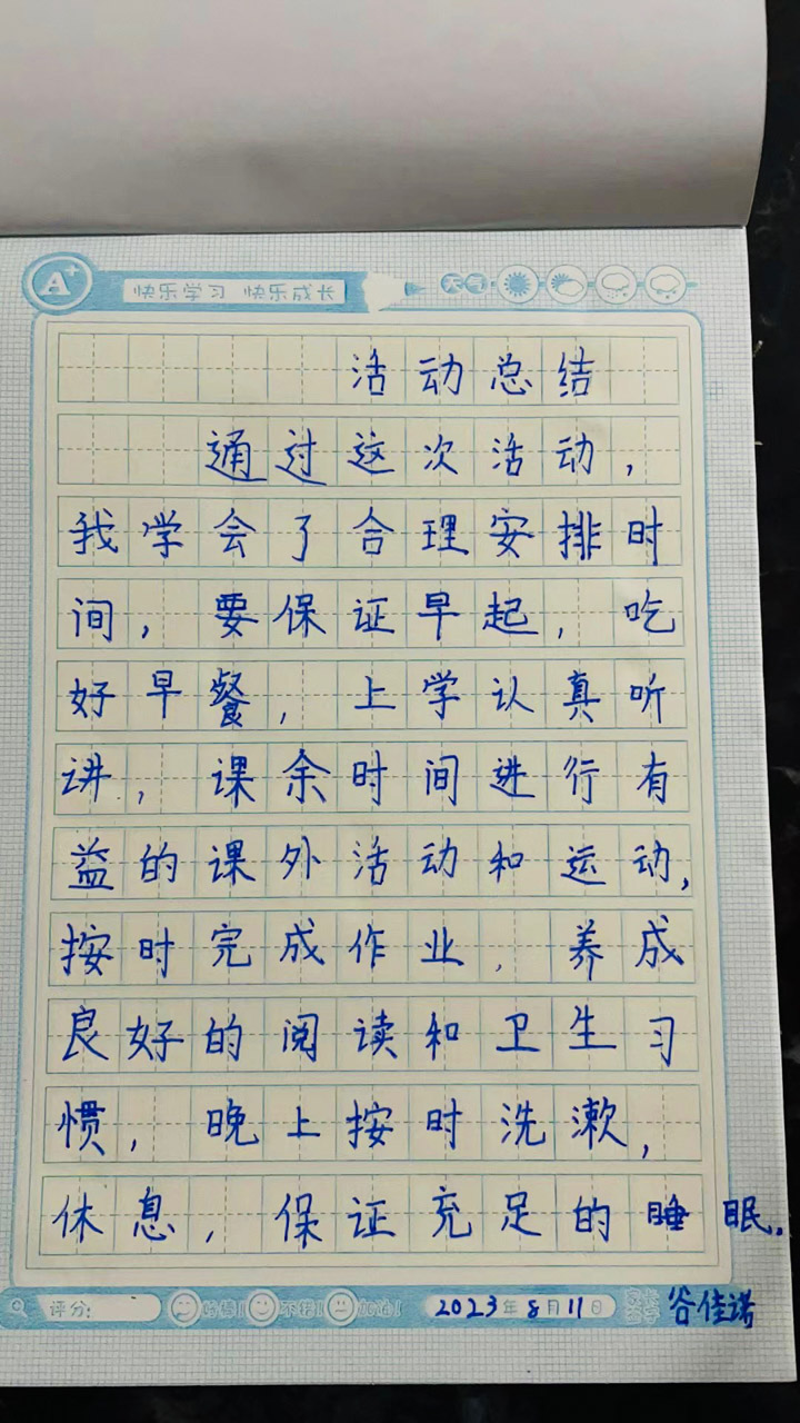 谷佳诺同学的暑假时间规划: