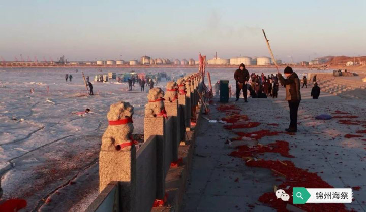 锦州,每年大年初一凌晨开始,会有来自当地的渔民、全国各地的游客自发到此进行海祭民俗活动,近几年来海祭的民众最多时达到上万人。